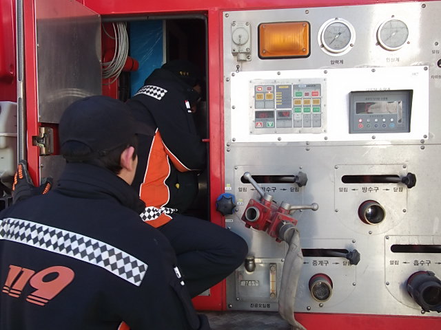 추운날씨도 잊게하는 소방장비조작훈련