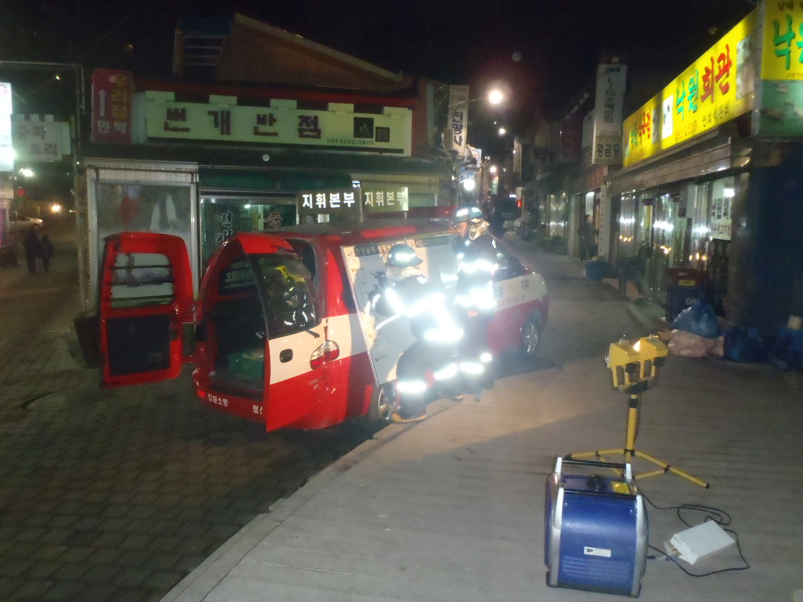 정선소방서(서장 박창진) 2.16(목)고한시장을 대상으로 재래시장 합동소방훈련을 실시 하였습니다. 이번훈련은 야간합동소방훈련으로 소방통로확보,주정차위반단속을 병행하여 실시 하였으며 방문객들의 안전을 위한 사전 훈련을 실시 하였습니다