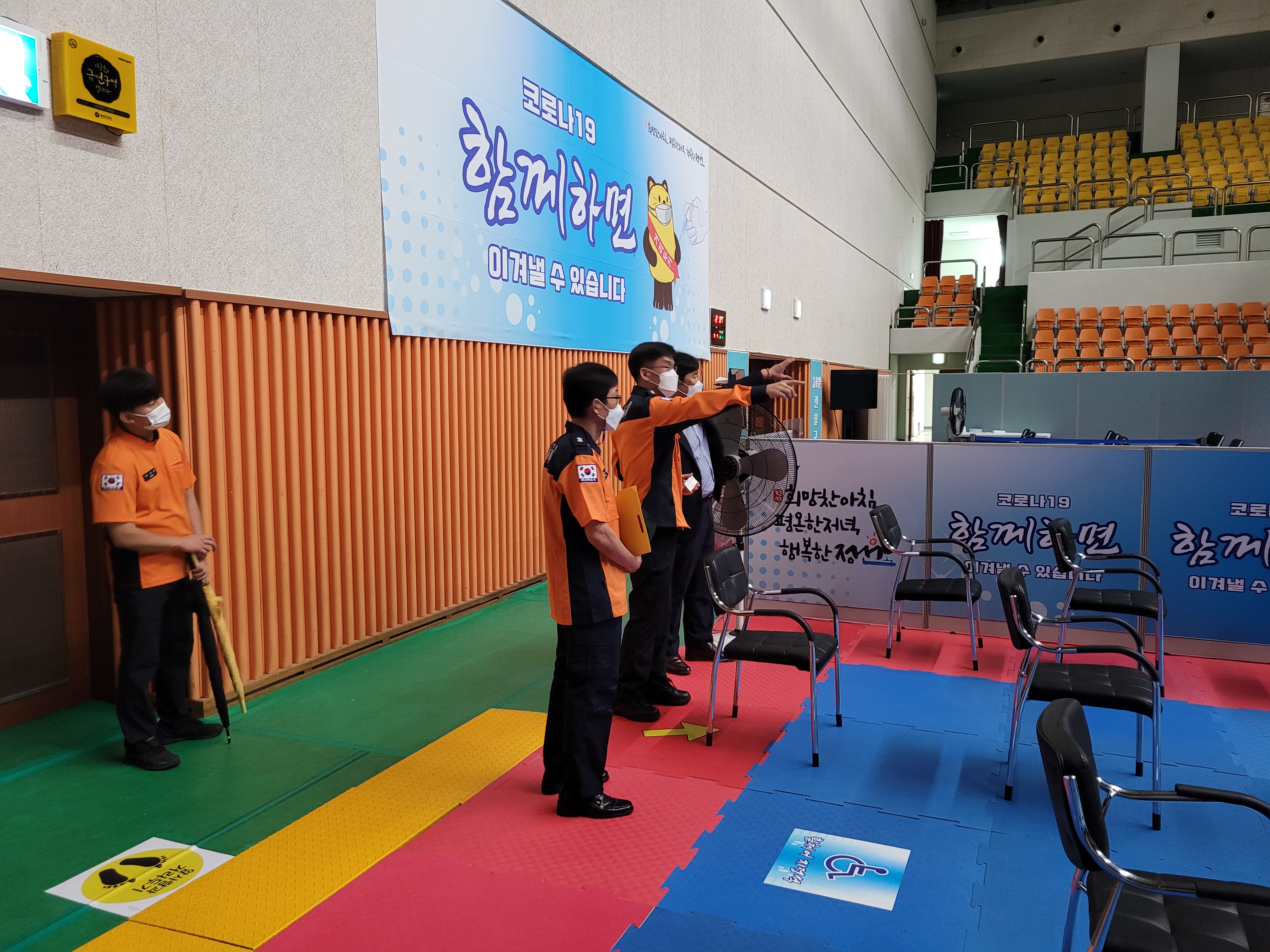 ➤ 관내 코로나19 예방접종센터는 정선종합운동장 실내체육관으로, 주요 점검 내용은 소방시설 점검, 화재취약요인 제거, 비상구 등 피난시설 점검 등이다.