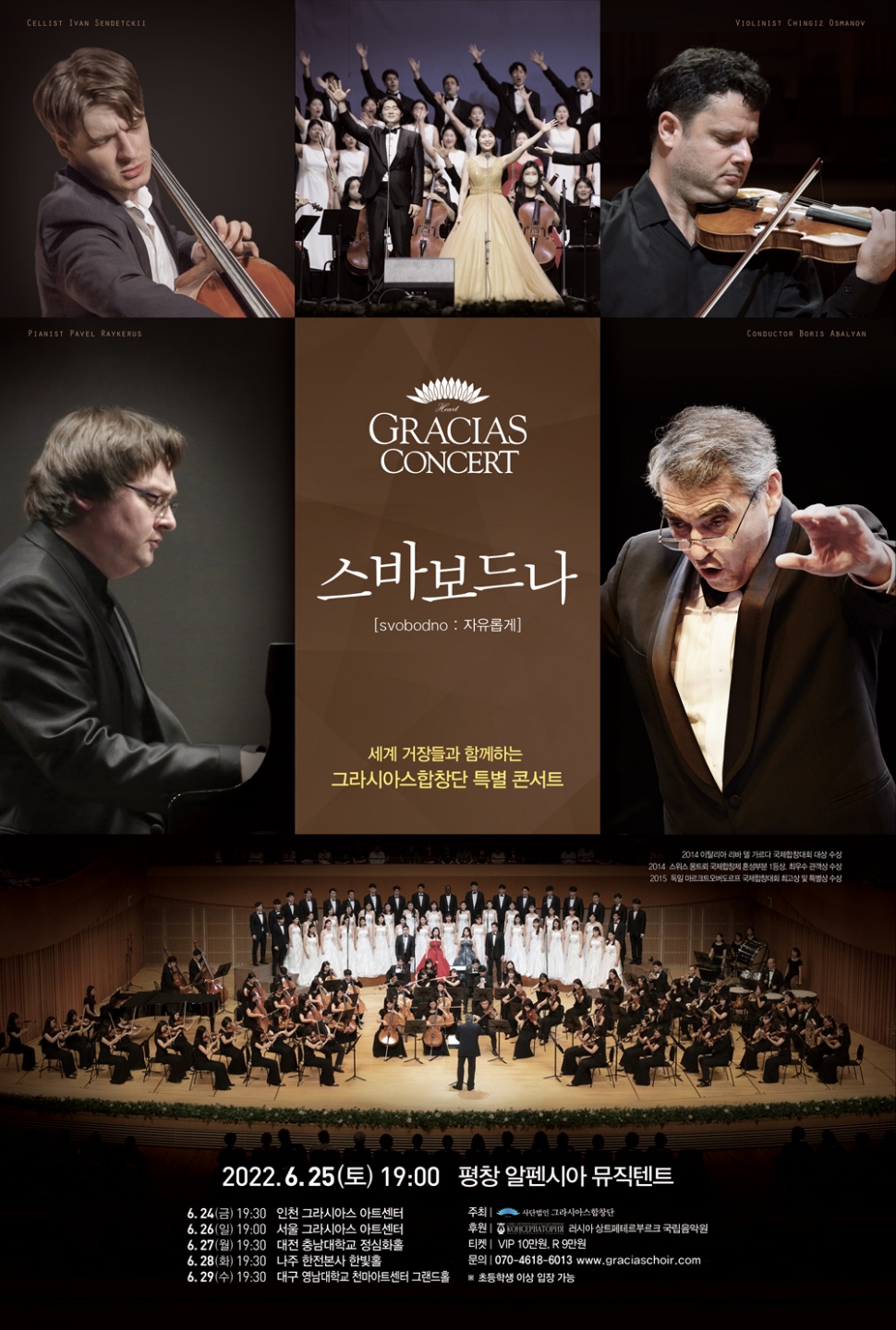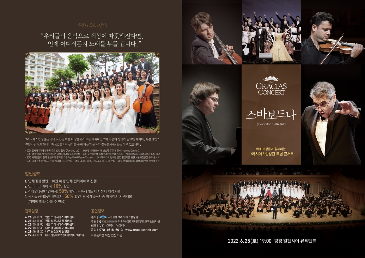 '스바보드나(Svobodno)'는 자유롭게 라는 의미로, 그라시아스합창단이 해외 정상급 아티스트들과 오케스트라와 함께 펼치는 클래식 음악 연주회이다.