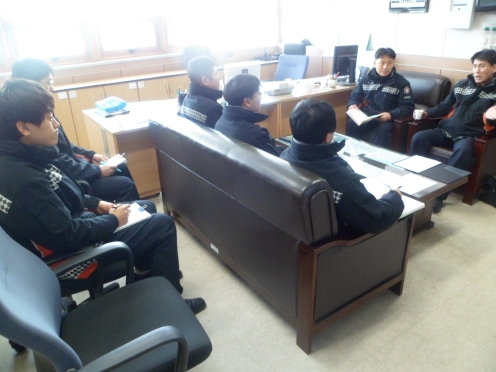 사고위험이 동반되는 복잡 다양한 소방환경을 극복하고 체계적인 안전관리로 소방공무원의 안전사고 ZERO화를 위해 2013. 02. 22(금) 11:30 ~ 12:00에 방호구조과장외 1명(안전주임) 대관령119안전센터에 방문하여 각종 현장 대응요령, 안전관리 메뉴얼 등 교육함.