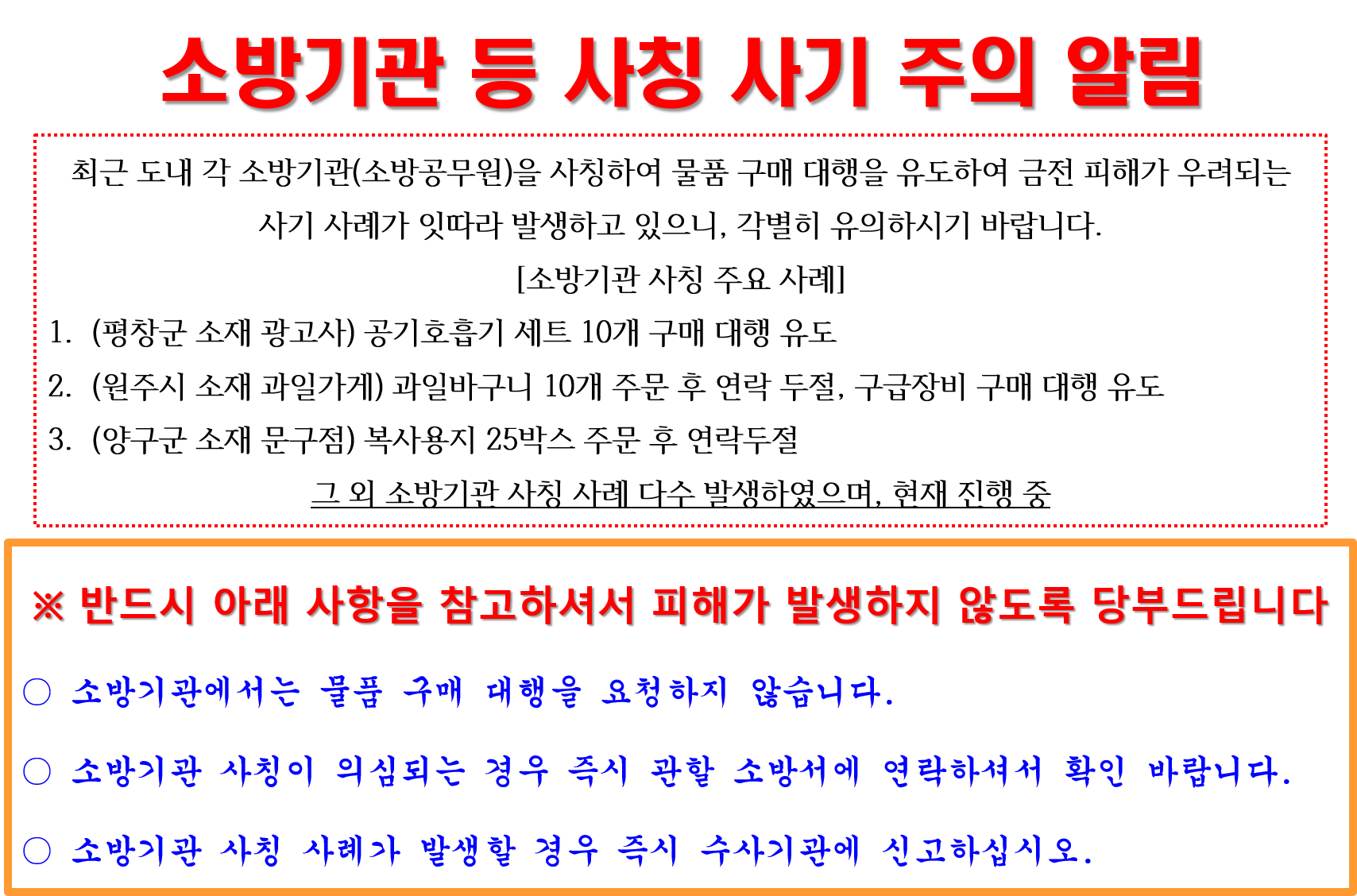 소방기관 사칭 사기 주의 알림