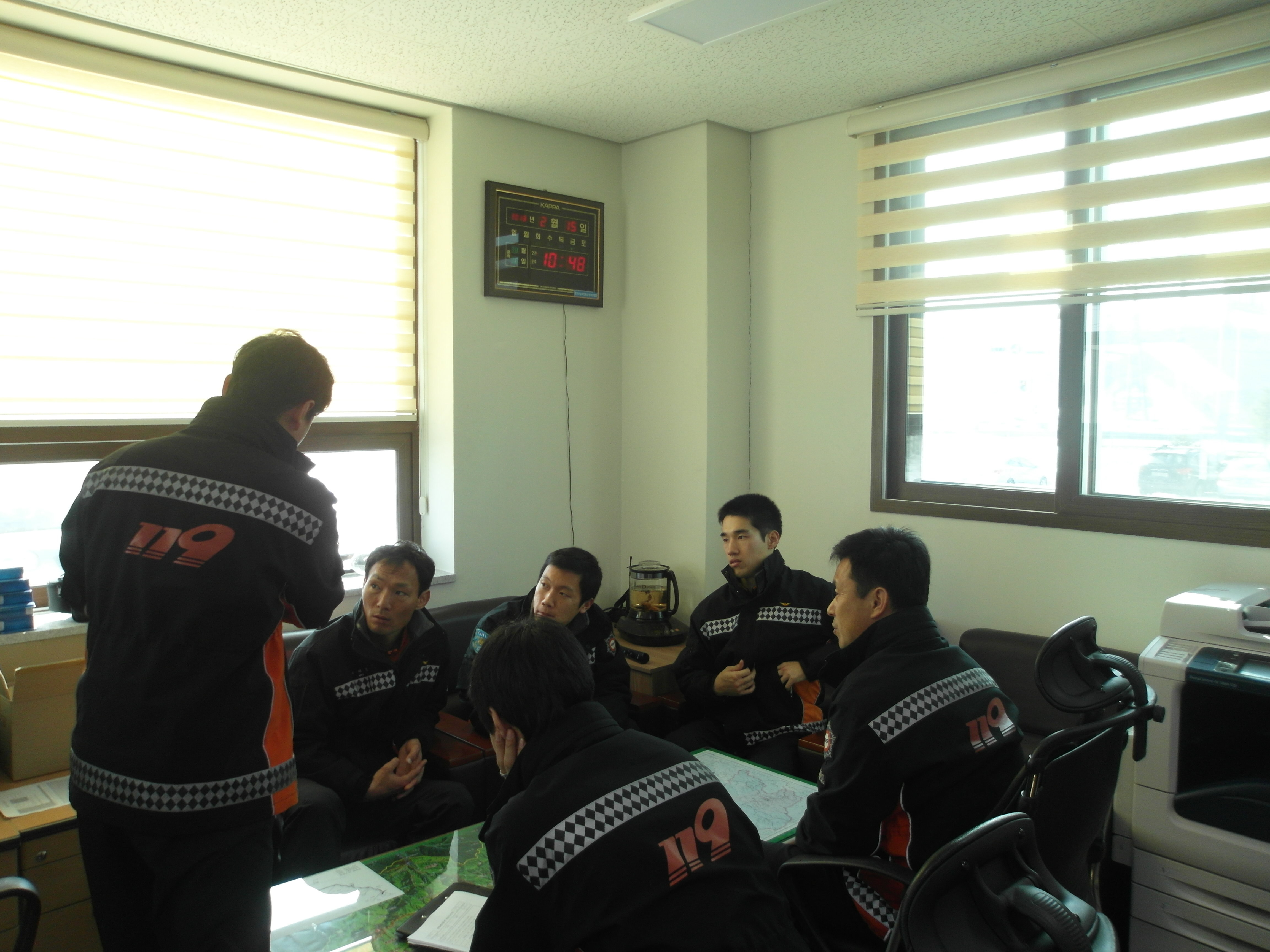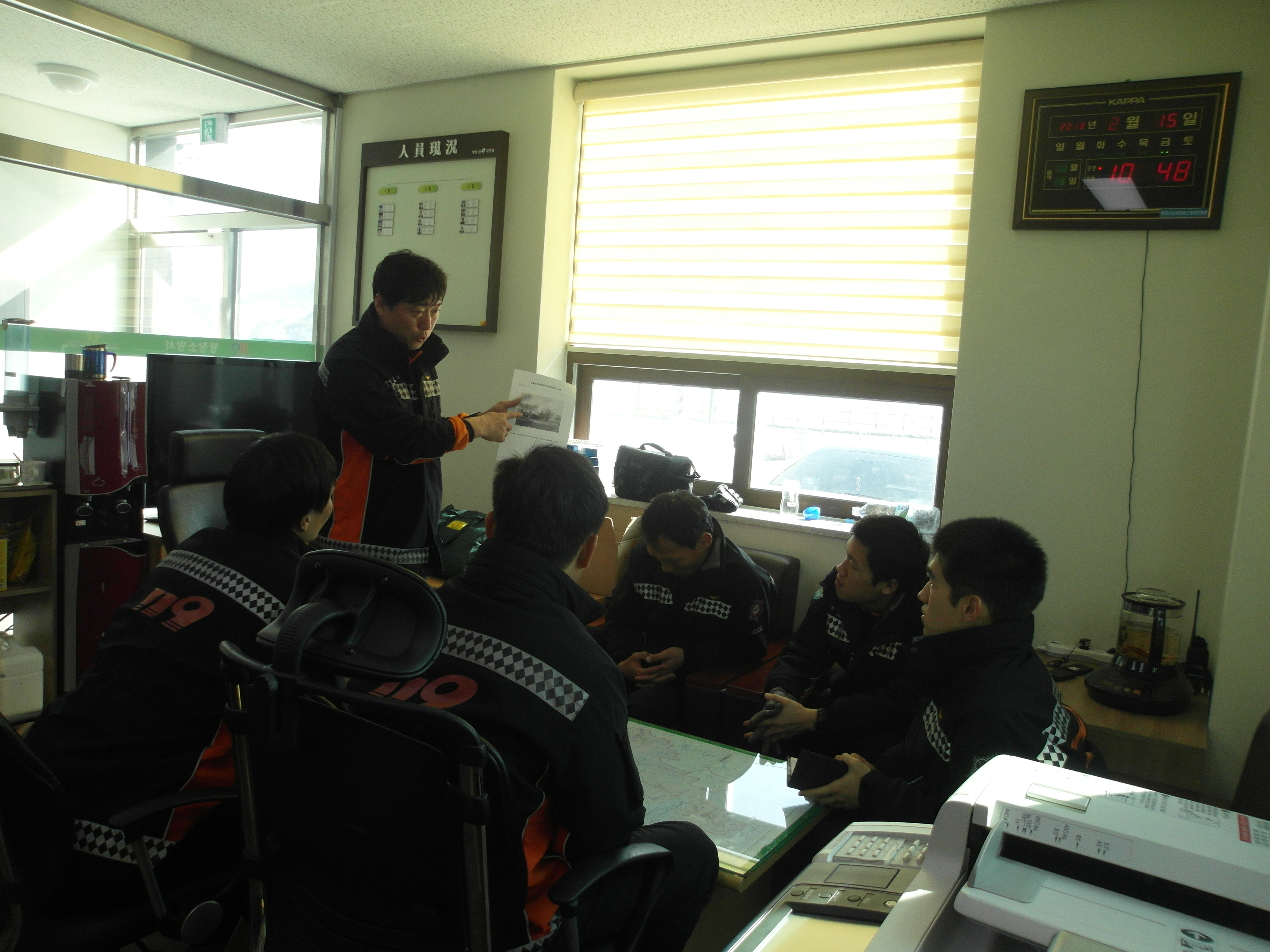 평창소방서(서장 김용락) 현장대응과 구조대 에서는 2013.2.15 위험예지훈련을 하였습니다. 고속도로 화물차 충돌 화재사건 위험예지훈련을 전대원 적극참여로 마무리하였습니다. 보다 향상된 팀워크로 실전대비를 철저히 할수있습니다.