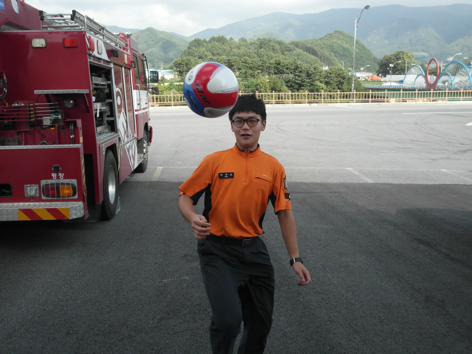 2013.7.24 평창소방서(김남숙 서장님) 평창구조대 의무소방원들의 체육 활동을 위해 지급해주신 족구공 감사히 잘쓰겠습니다.