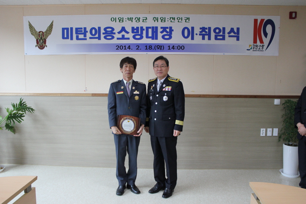 □ 평창소방서(서장 김남숙)는 18일 14시 소회의실에서 김남숙 평창소방서장, 민경식 평창의용소방대연합회장, 미탄의용소방대원 및 직원이 참석한 가운데 박상균 전 의용소방대장과 신임 전인권 의용소방대장의 이·취임식을 개최했다