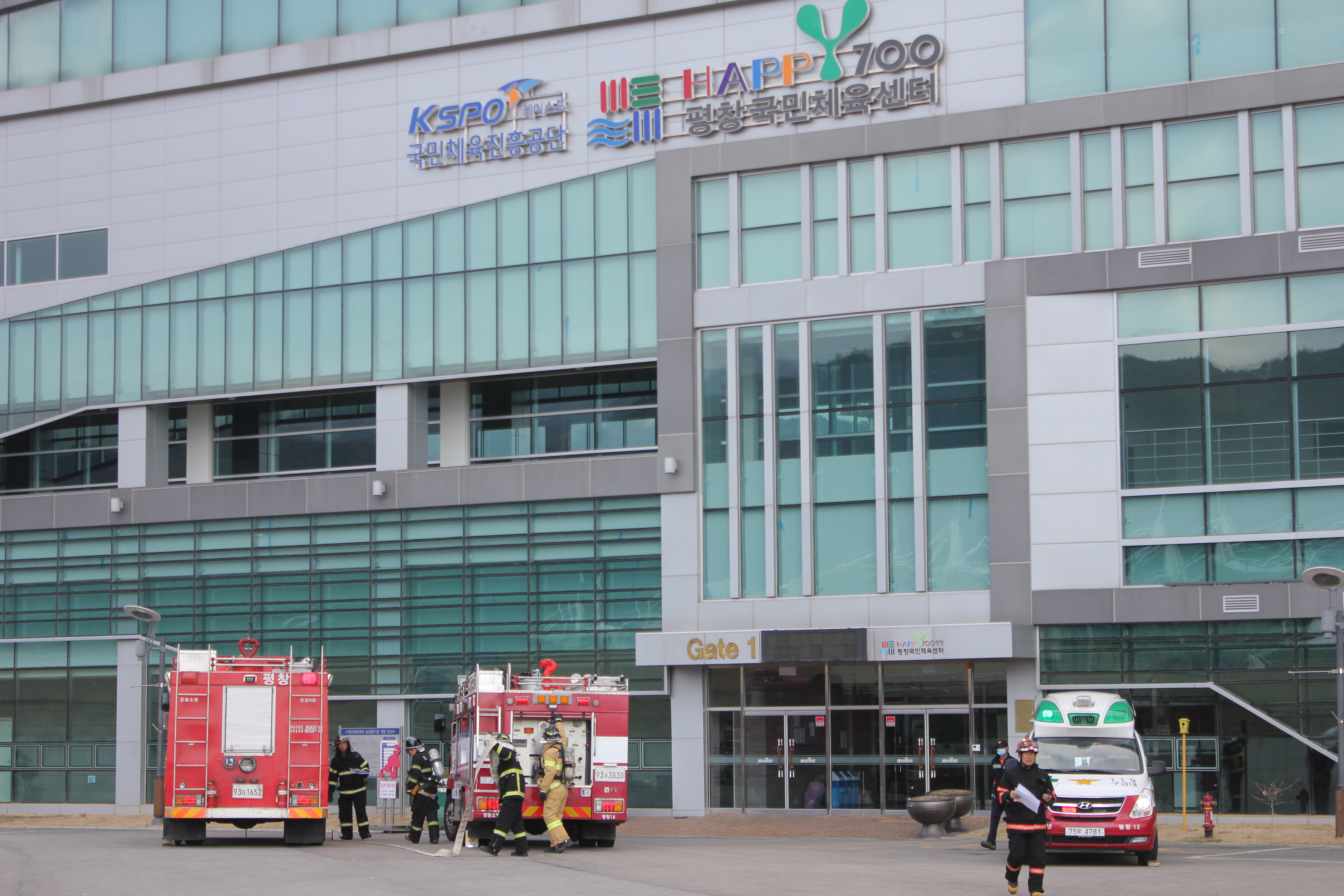 같은날 오후 14시 평창군 평창읍 종부로 69-27 “평창국민체육센터”에서 가스폭발로 현관 일부 붕괴되고, 1층에서 화재가 발생하여 다수의 사상자가 발생한 상황으로 이벤트에 따른 불시통제단 가동훈련을 실시하였다.