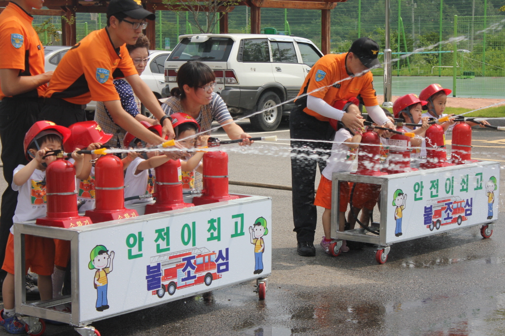 이날 견학은 실내 소방안전교육으로 119신고요령, 소방관이 하는 일 등 교육 후 물소화기 체험, 소방차량 탑승 및 방수시범 등으로 이루어졌다.