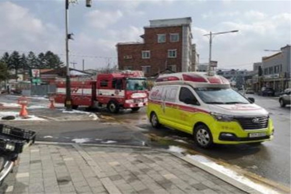 (21.01.14.) 평창소방서, 관내 전통시장 소방차 길 터주기 훈련