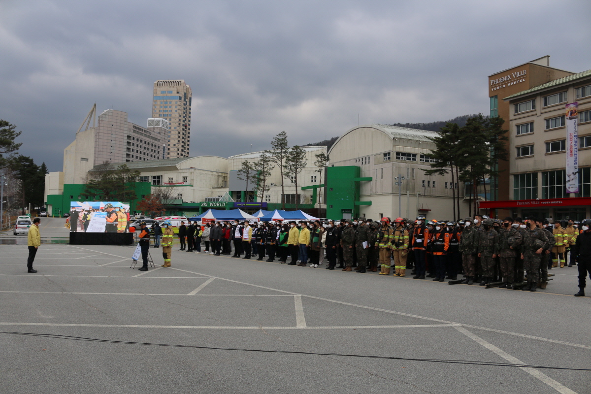 평창소방서(서장 최영수)는 21일 오후 2시 평창군 봉평면 휘닉스파크 유스호스텔에서 대형 재난에 대비하기 위한 ‘2022년 긴급구조 종합훈련’을 실시했다고 밝혔다.
