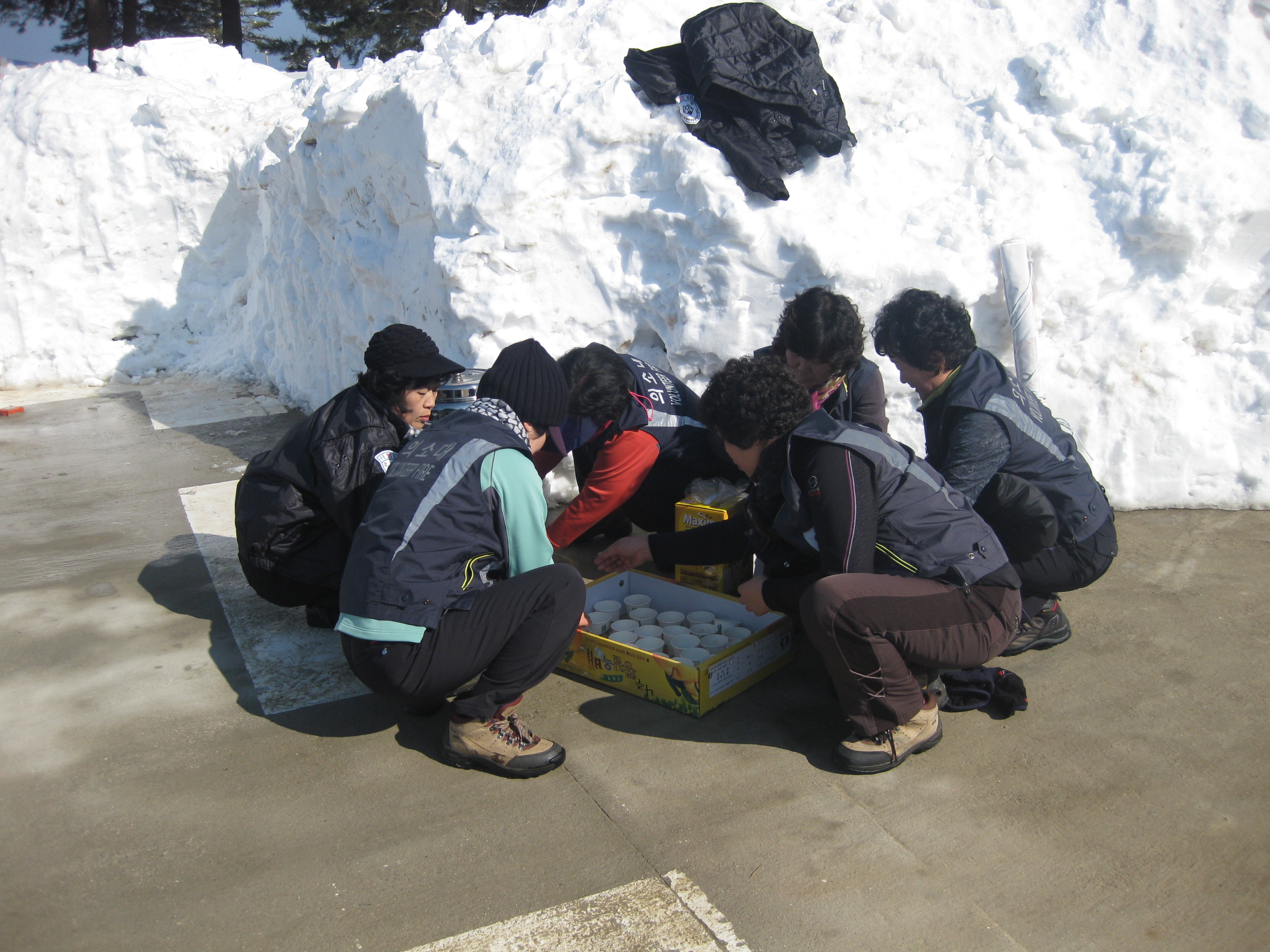 의소대 대원 11명 참가하여 야생동물 먹이주기 사료운반하면서 커피및 음료봉사함