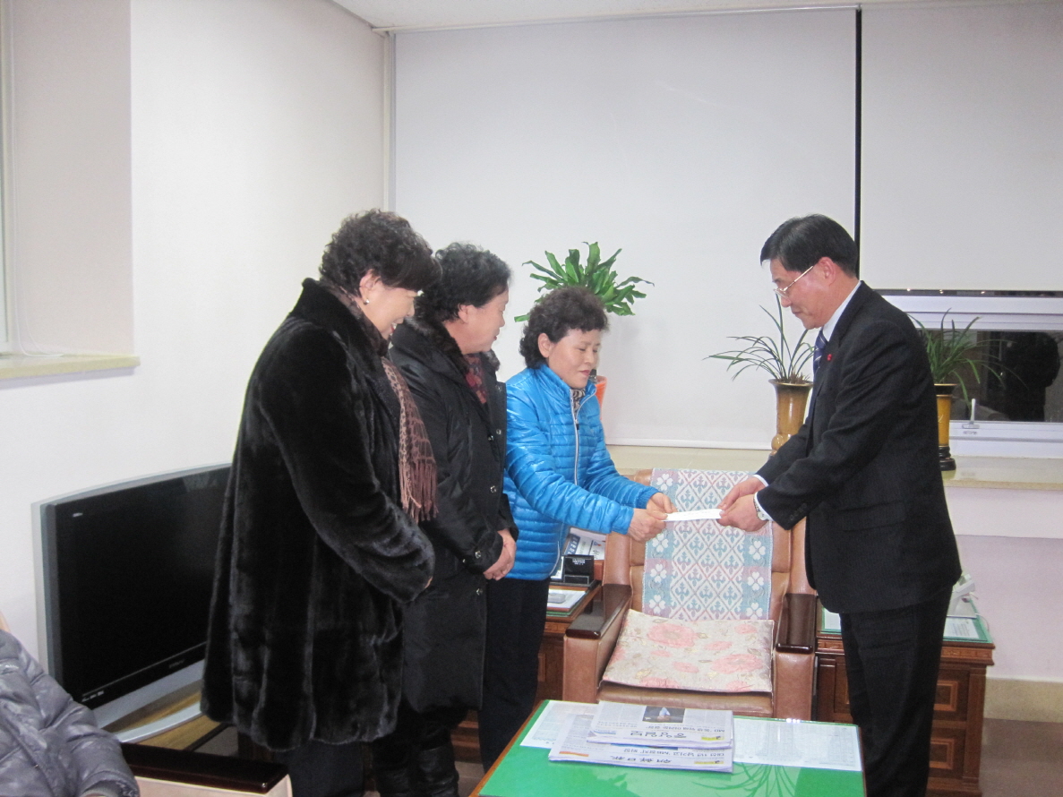 도계여성대에서는 2011년 12월 12일 도계읍사무소(읍장 이진국) 사회복지공동모금회에 일금 20만원을 기부했습니다. 도계여성대 일동