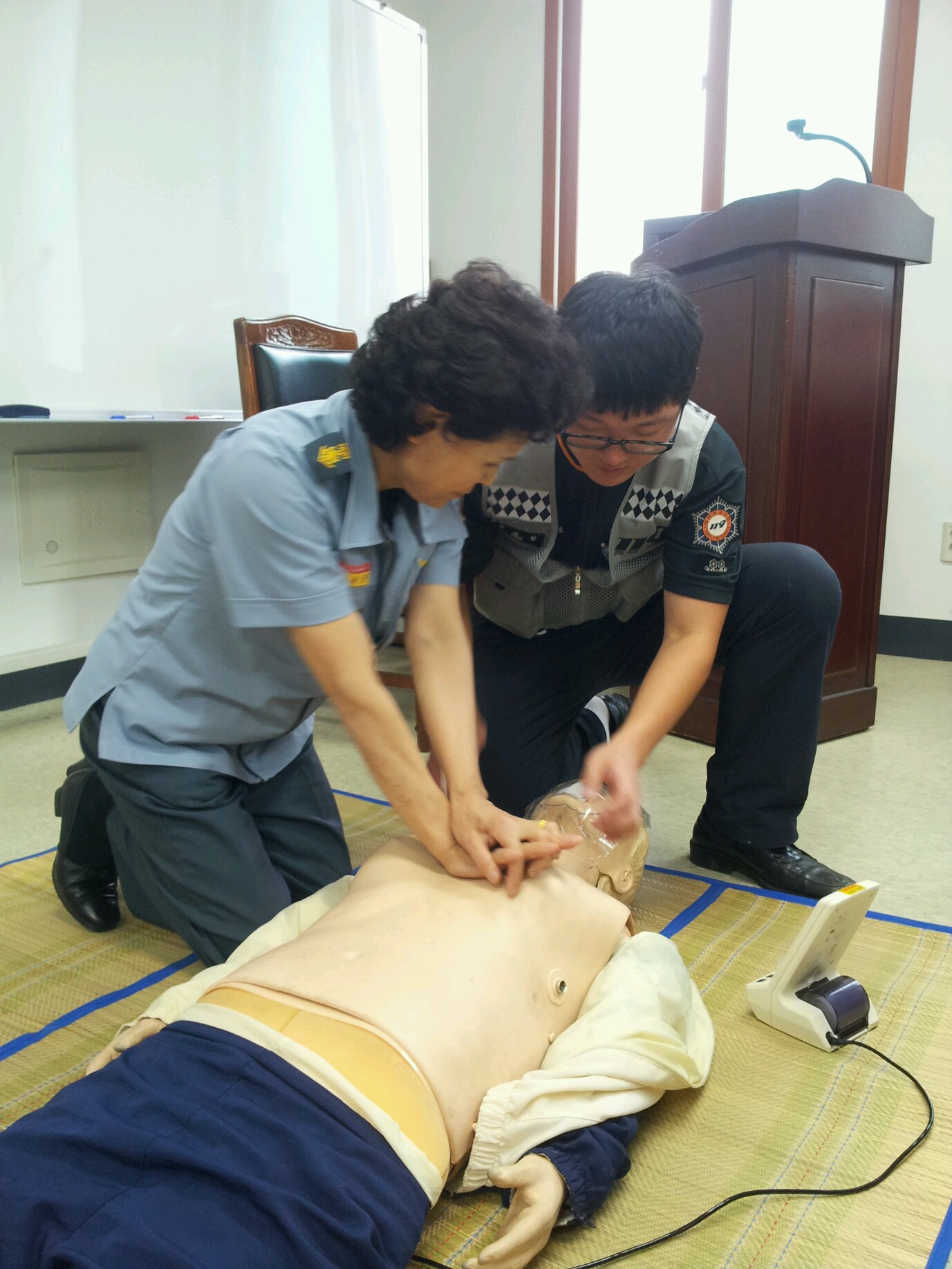 도계여성의용소방대(대장 김옥랑)는 8.27일 도계의용소방대 사무실에서 제4차 정기교육 및 심폐소생술(CPR)교육을 실시했다.