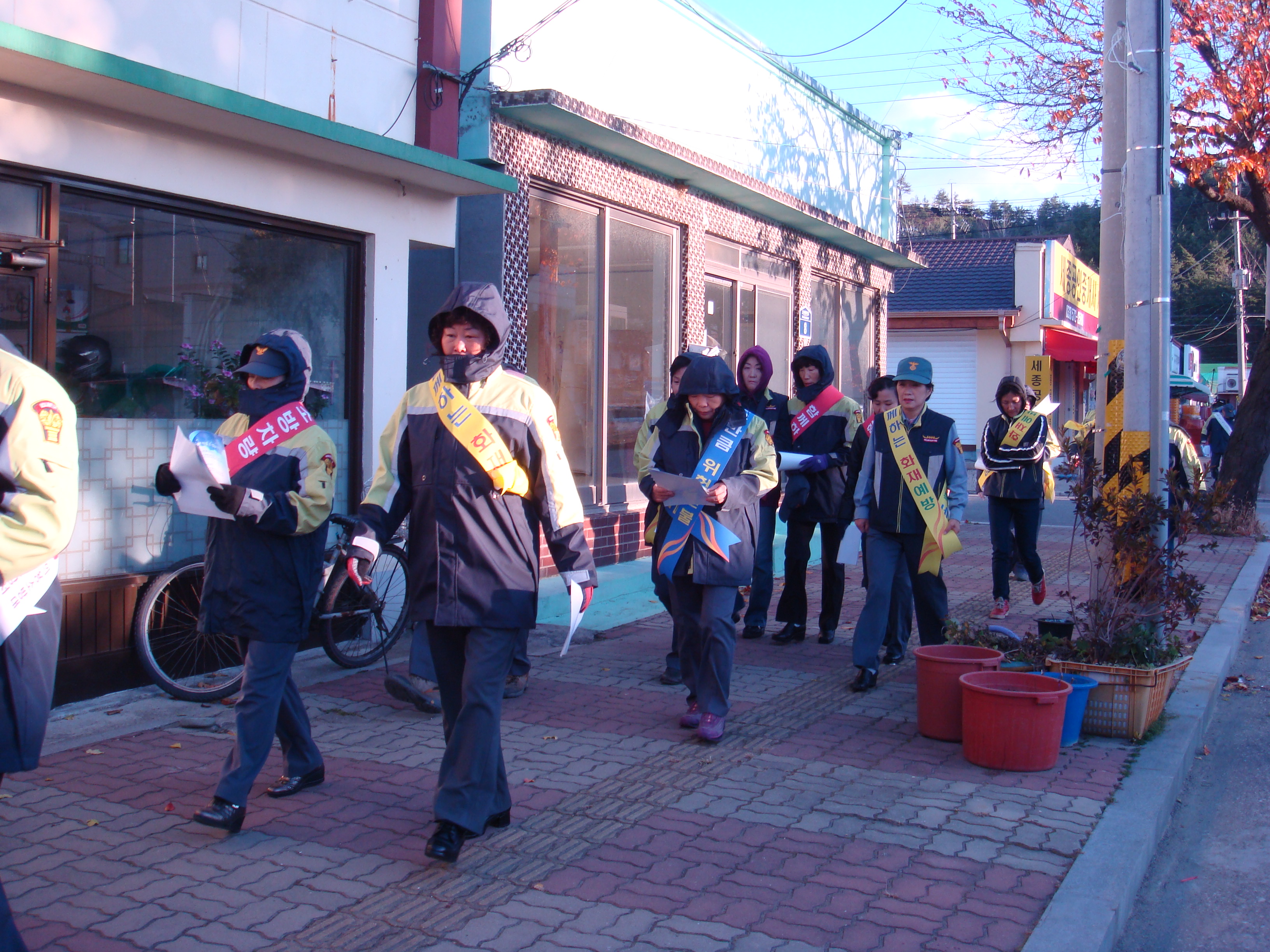 매서운 추위속에 남.여의소대원들의 소방차 길터주기 ,