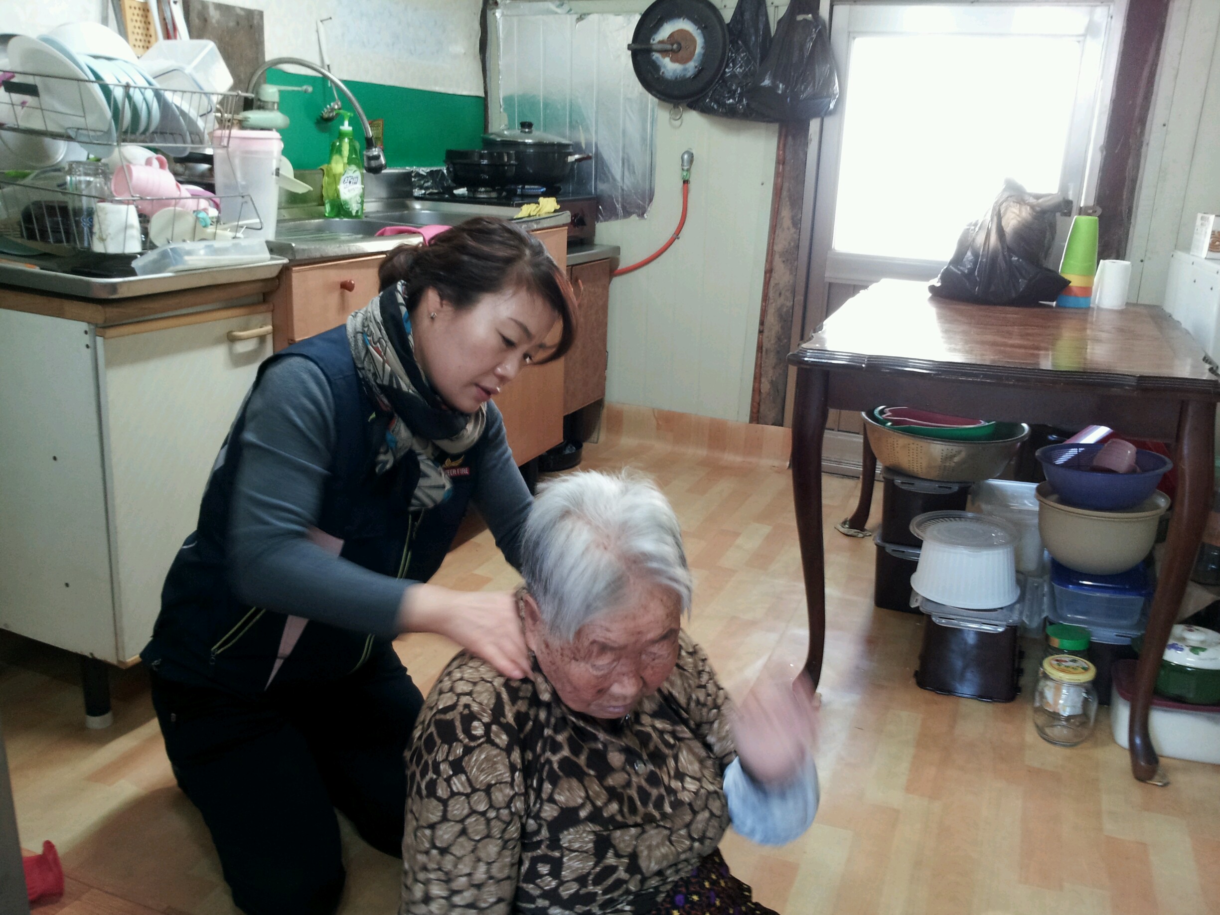 독거 어르신 이미용 부터 집안 청소 빨래 가마 솥 불 피워서 목욕 봉사 총무 부장님 어르신옷 입고 아르신 앞에서 재롱 잔치까지 준비 해 간 식사 대접 어르신 태어나서 처음 맞 보는행복 이라고 하신다