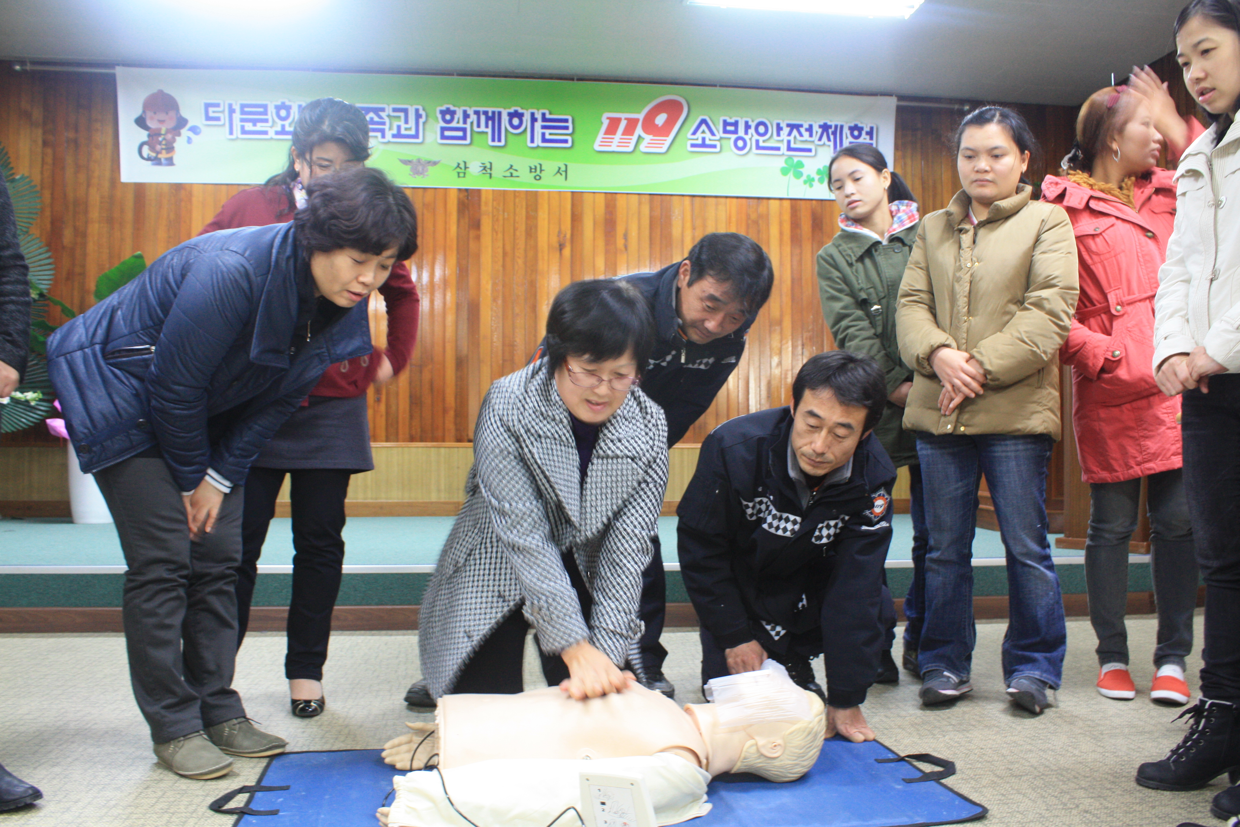 2012년 11월 20일 10시 대회의실에서 다문화가정 여성 32명을 대상으로 안전사고방지를 위한 소방안전교육 및 체험 행사를 실시하였다.