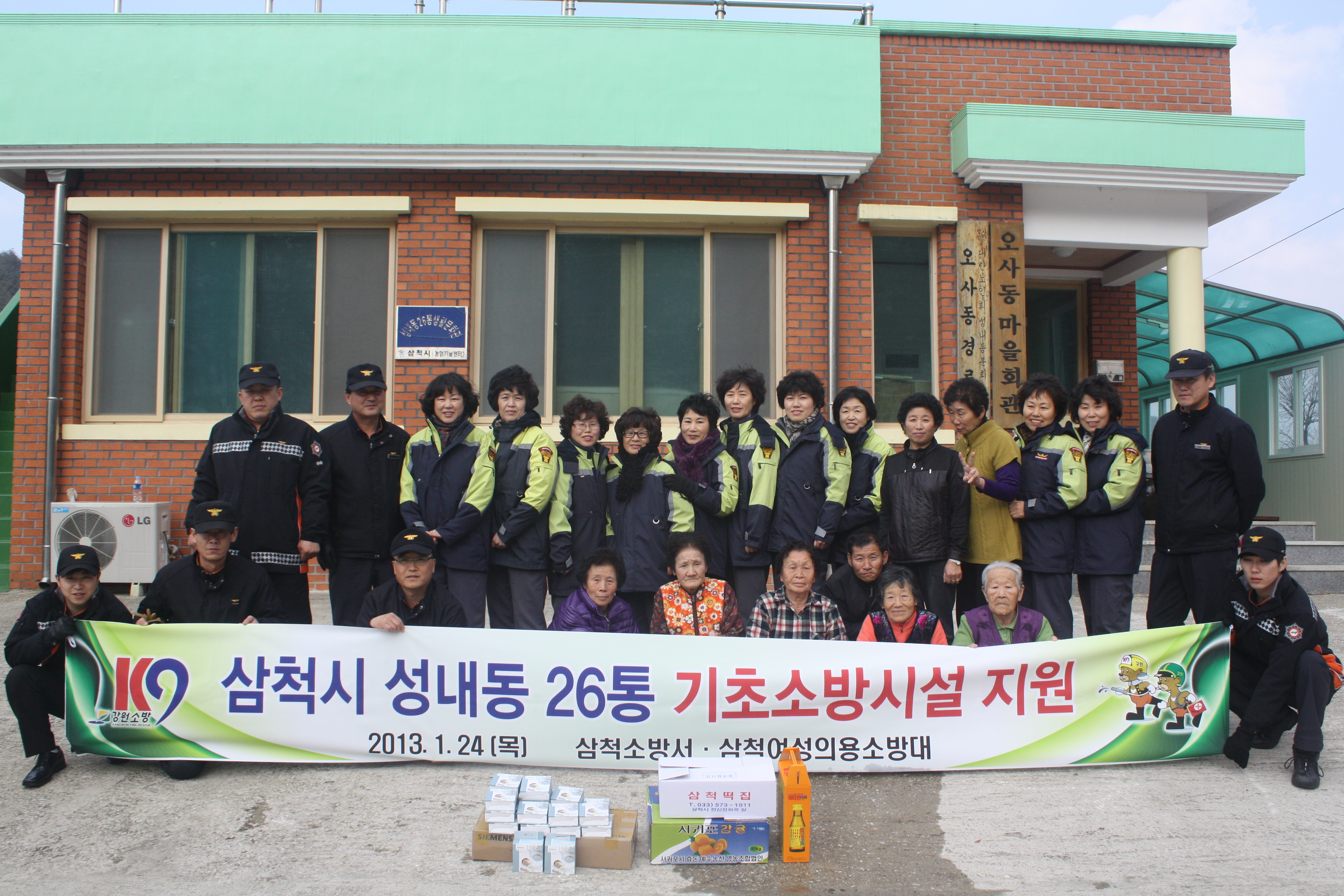 △ 삼척소방서(서장 이지만)와 삼척여성의용소방대(대장 최금순)는 2013년 1월 24일 14시 삼척시 성내동 26통(오사리마을) 20가구에 주택 화재시 신속한 대처를 할 수 있는 단독경보형감지기를 설치하였다.
