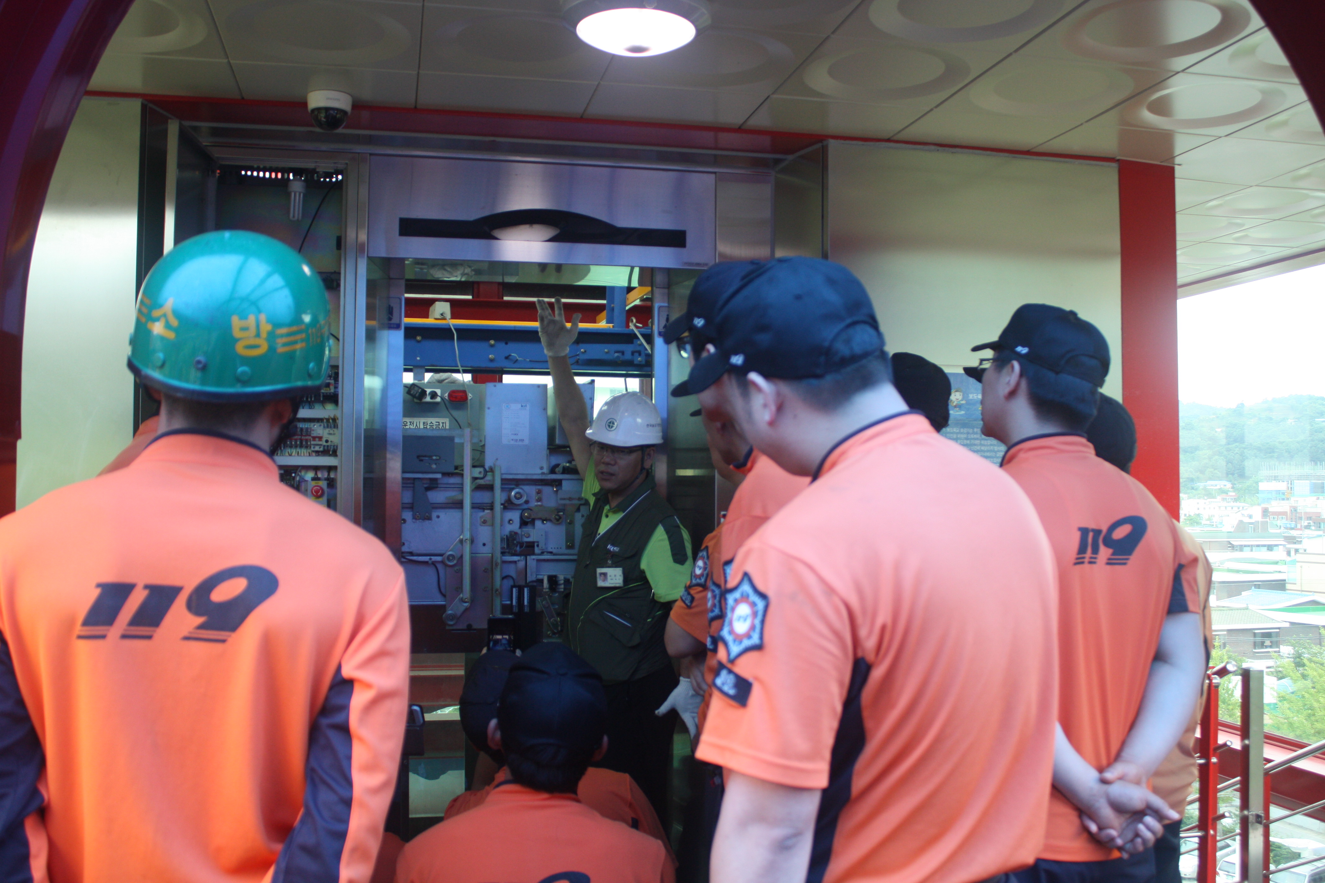 이번 교육은 대규모 정전사태인 블랙아웃 상황을 대비하여, 승강기 구조에 대한 이론 교육을 통하여 119구조대원들의 승강기에 대한 이해도를 높이고 승강기의 고장이나 사고가 발생할 경우 구조대가 대응하는 절차 및 초기대응에 따른 2차 안전사고를 예방하기 위한 위험요소에 대해 교육했다.