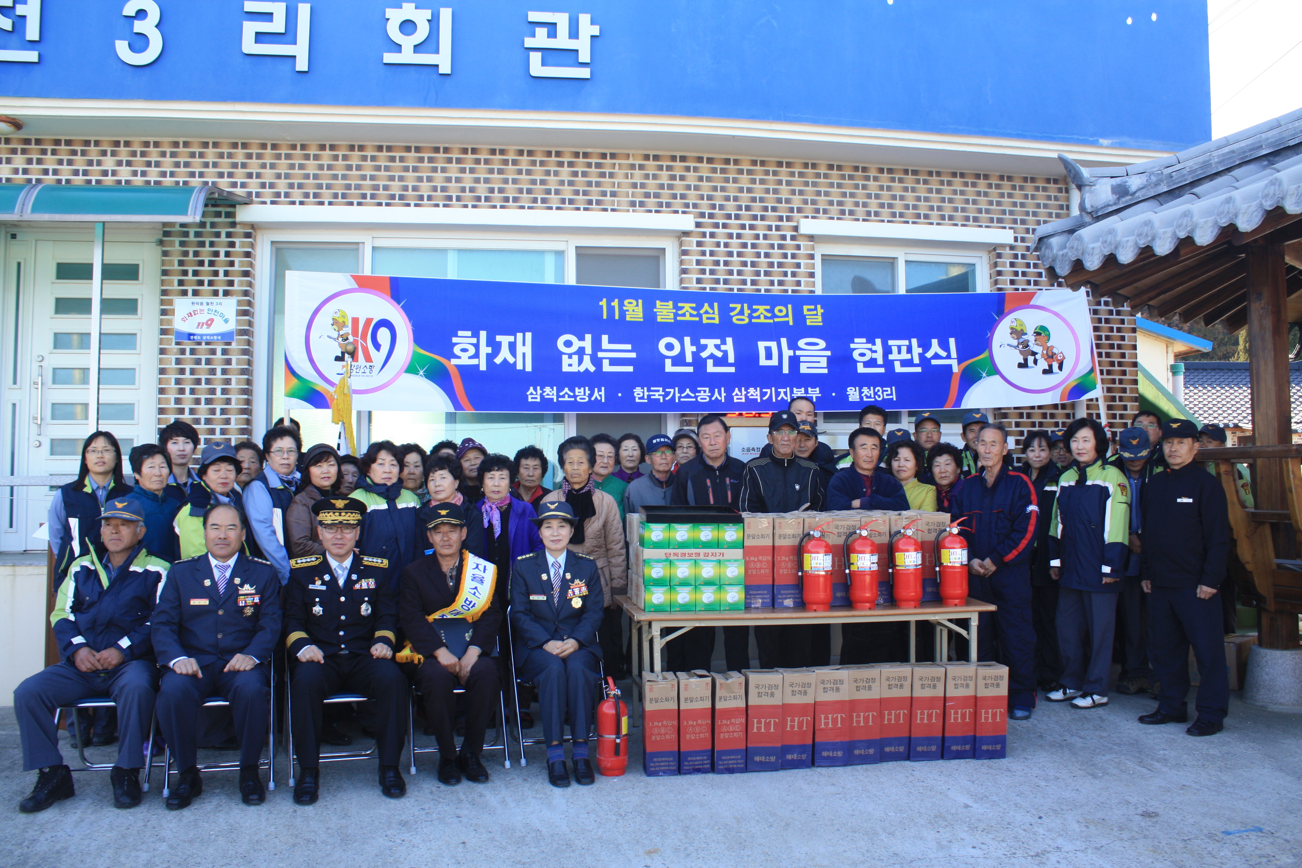 이번 화재없는 안전 마을 조성 행사는 단독 경보형 감지기 100대와 소화기 50대를 기증한 한국가스공사 삼척기지본부의 지원을 받아 화재없는 마을 현판식을 시작으로 자율소방대장(김경식 이장)위촉식 및 소방안전교육 등 행사를 가졌다.