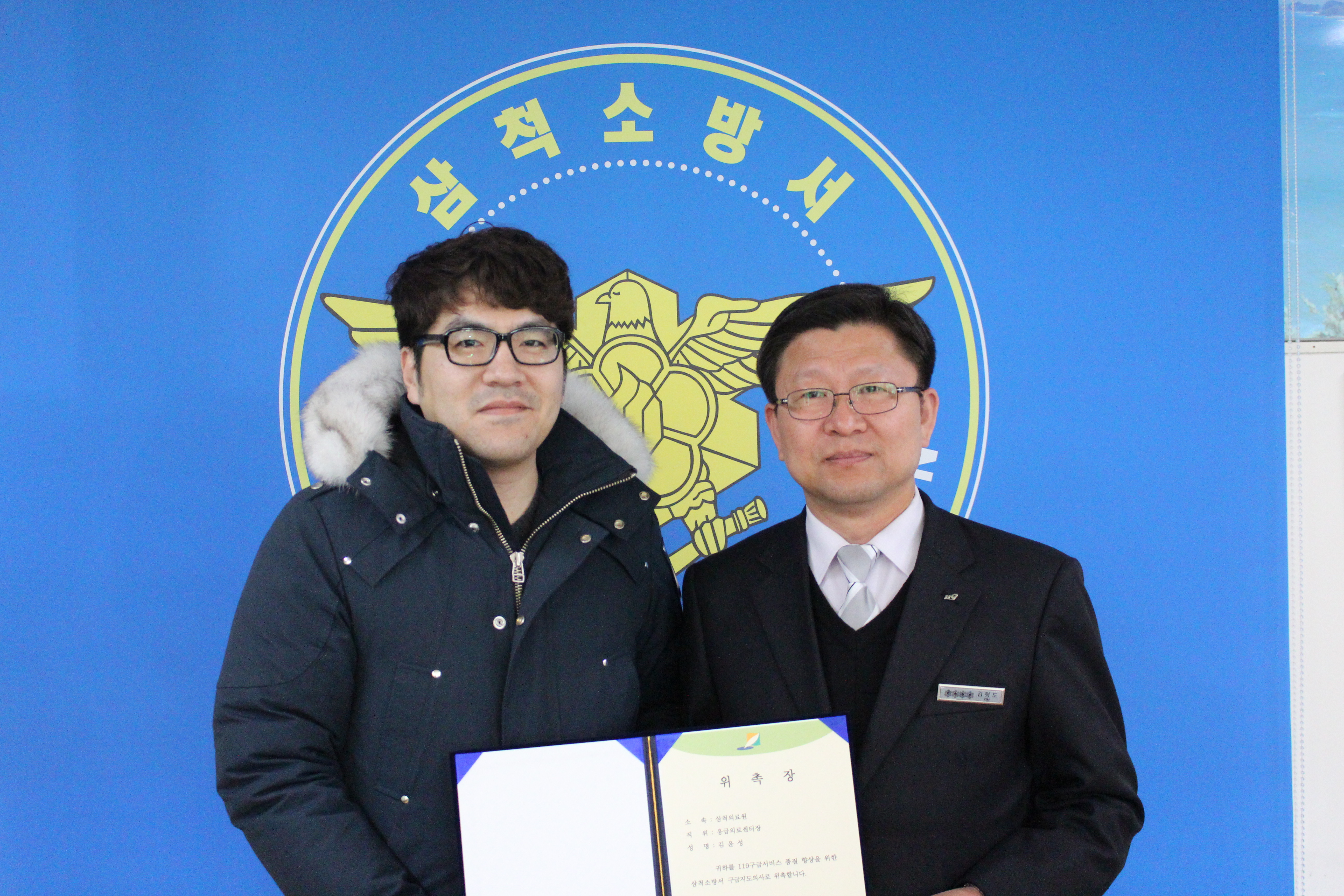 11일 오전10시 서장실에서 삼척의료원 김윤성 응급의료센터장을 삼척소방서 구급지도의사로 위촉하였다.