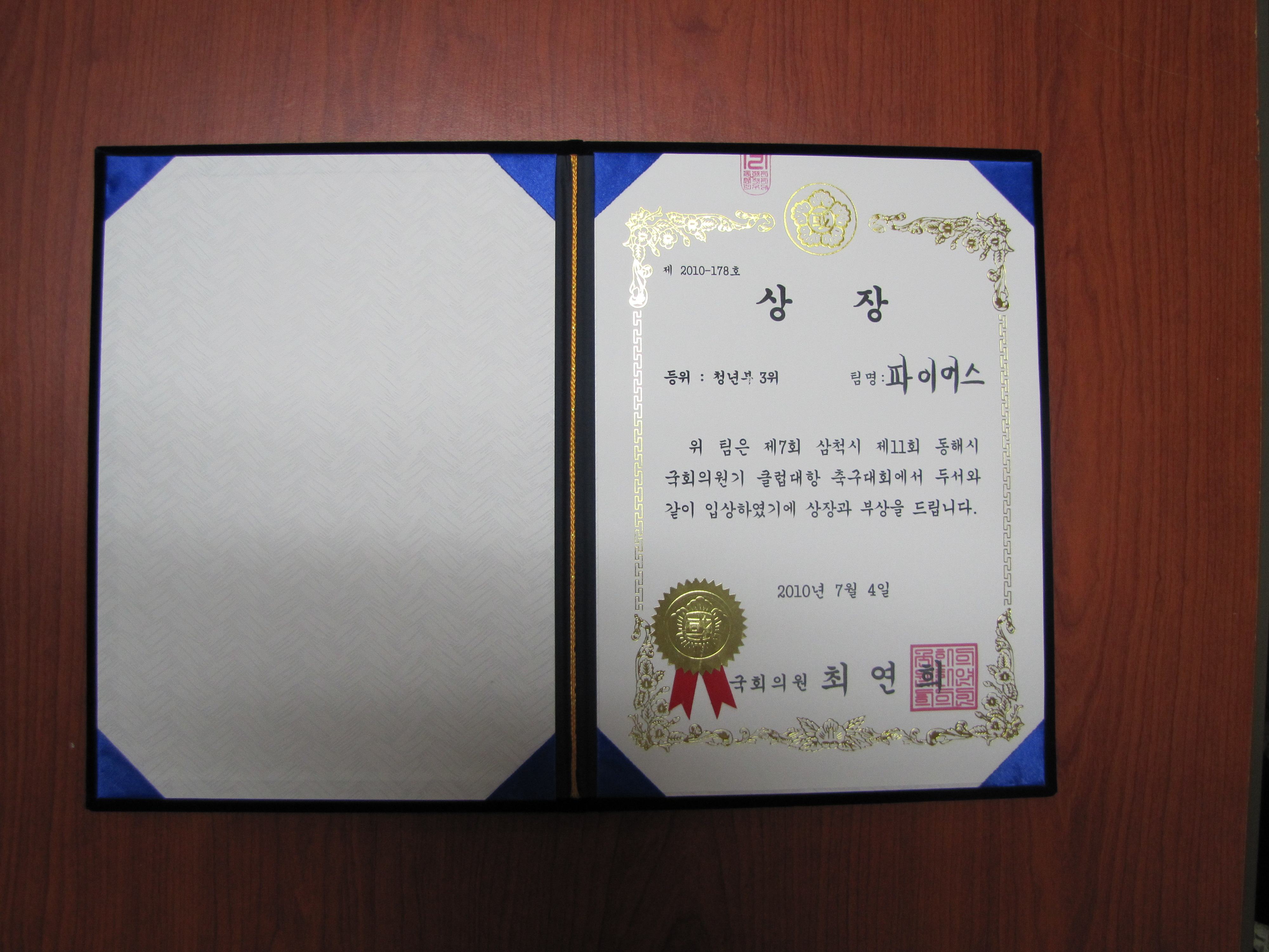 삼척소방서 축구동호회 "파이어스" 팀이 지난 7월3일부터 4일까지 삼척시 종합운동장 과 보조구장에서 열린 제7회 국회의원기 축구대회에서 청년부 종합3위의 우수한 성적을 거두었습니다.
