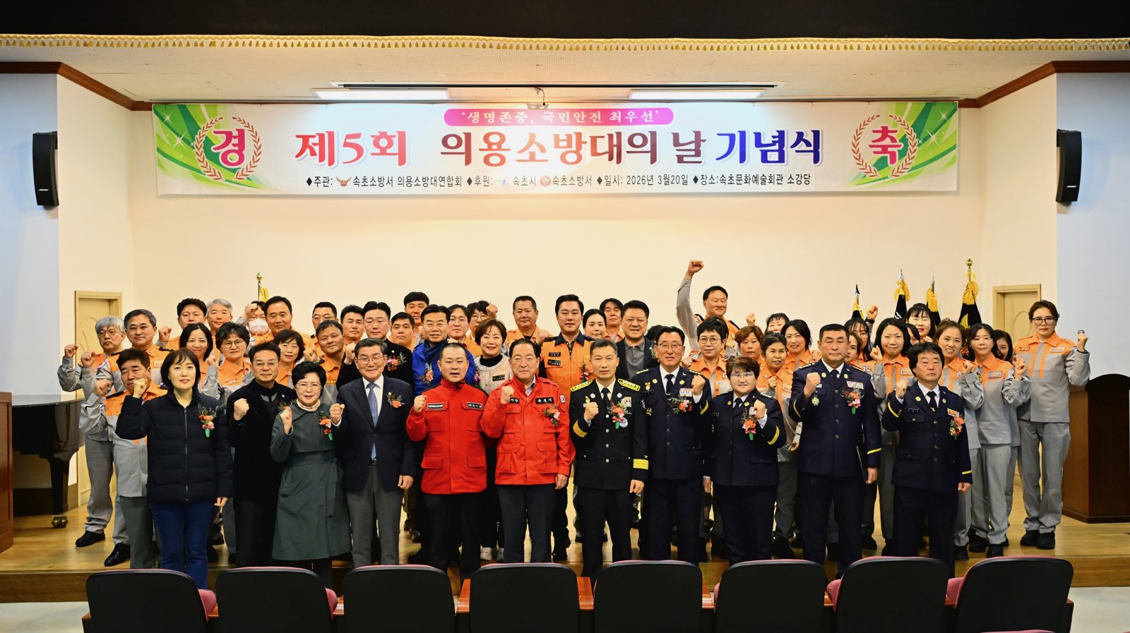 속초소방서는 의용소방대 연합회가 20일 오전 10시 30분 속초문화예술회관 소강당에서 '제5회 의용소방대의 날 기념식'을 개최했다고 밝혔다.