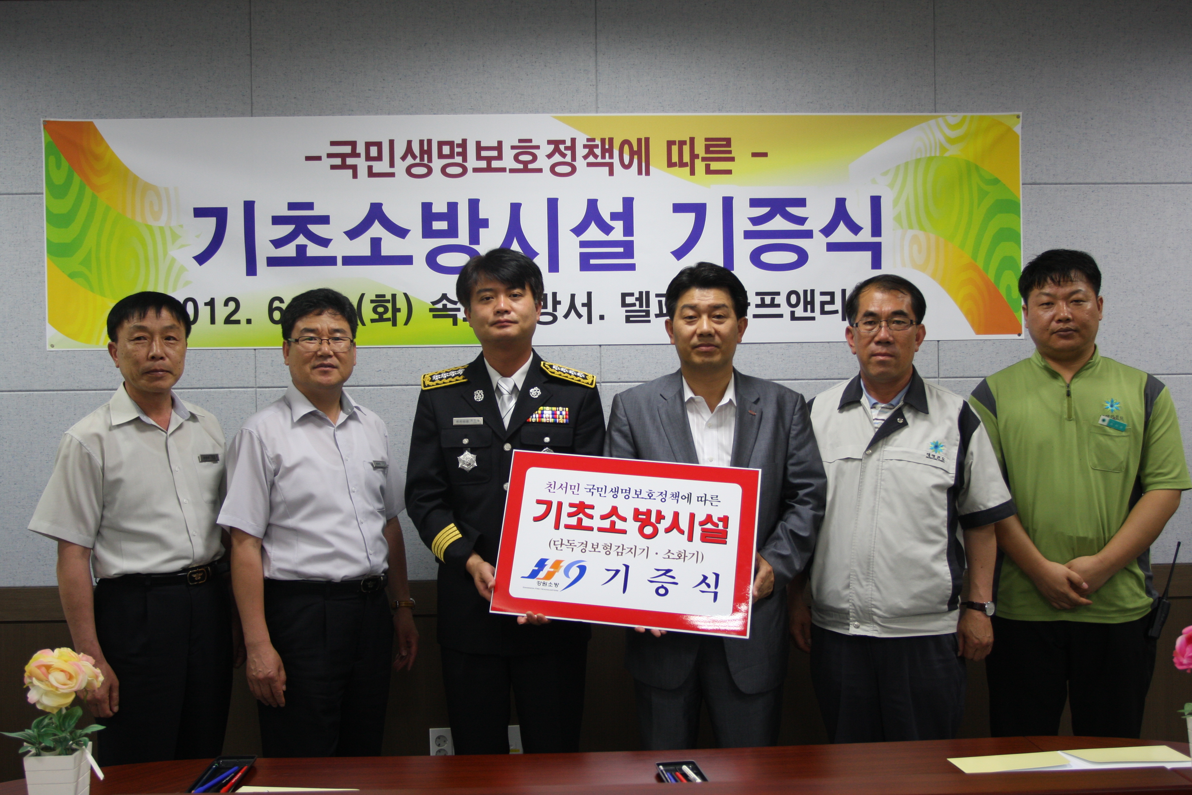 이번 기증식은 『국민생명보호정책』과 연계하여 화재취약계층에 대한 주택화재를 예방하기 위한 것으로 델피노골프 앤 리조트에서 단독경보형 감지기 50개, 소화기 50개(약 200만원 상당)를 속초소방서에 기증하였다.