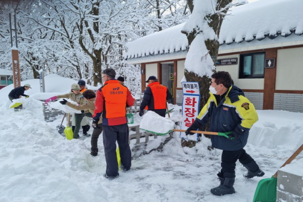 속초소방서 의용소방대연합회는 지난 1일부터 7일까지 많은 눈이 내려 불편을 겪고 있는 다중밀집지역을 방문하여 제설작업을 실시하였다.