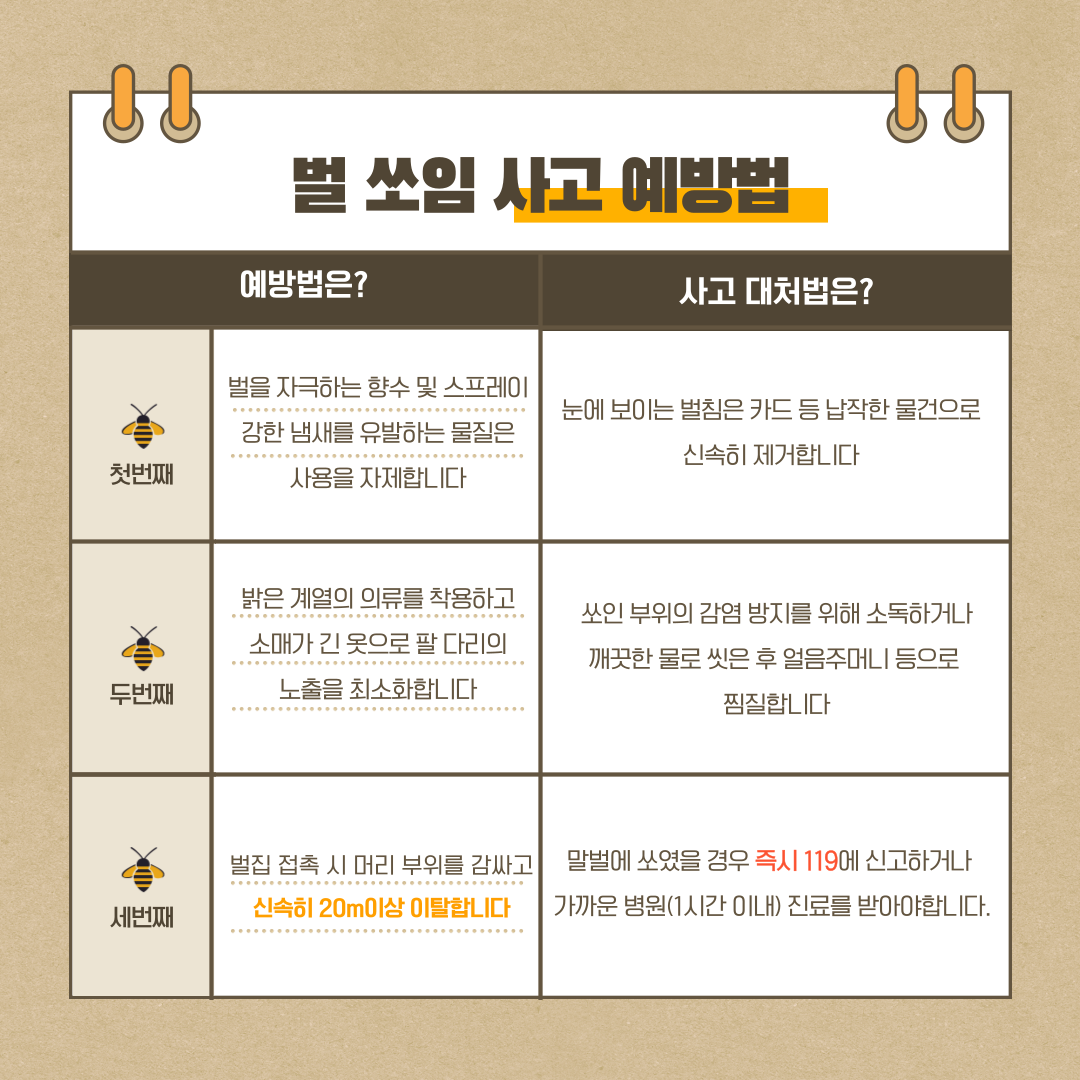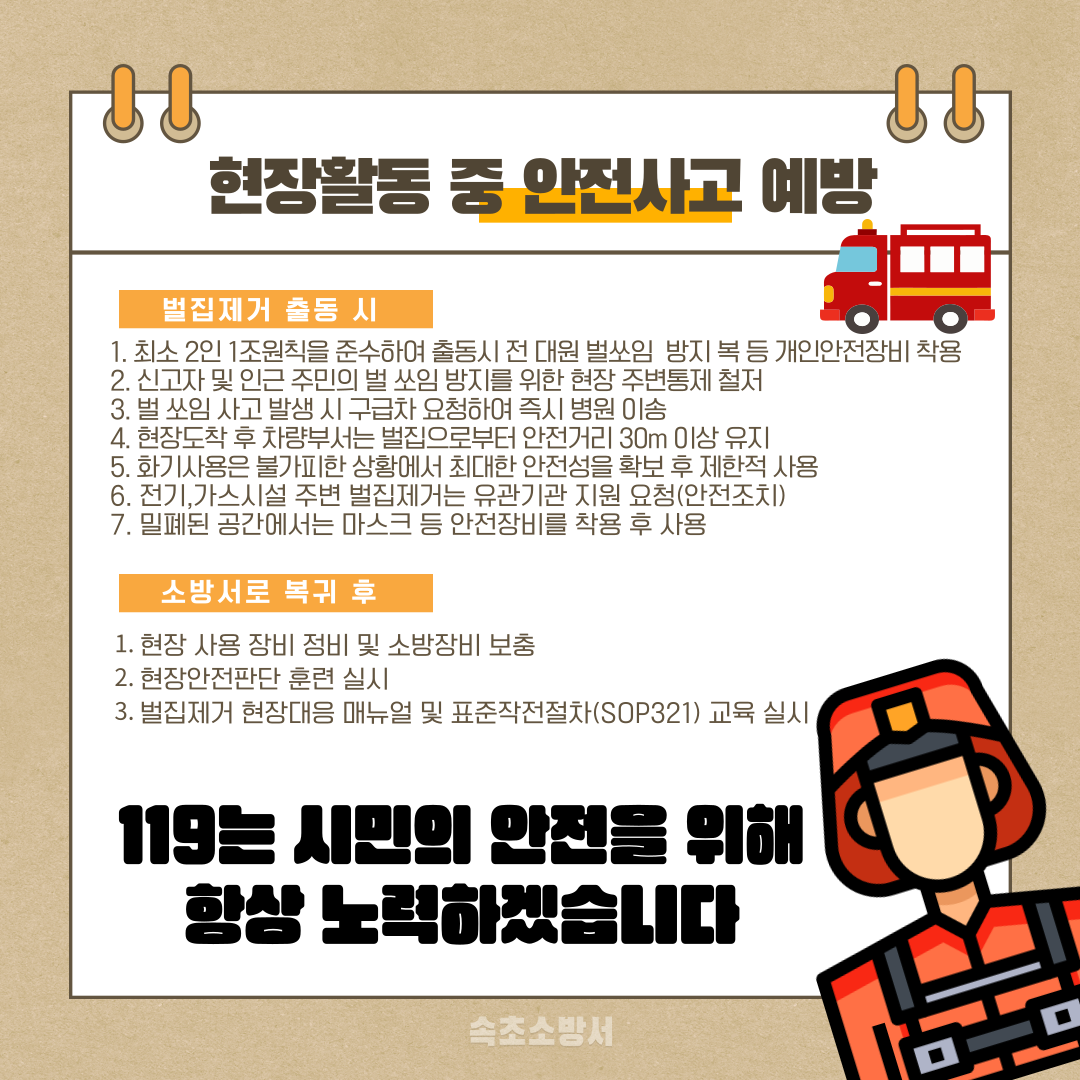 벌 쏘임 예방 및 현장대원 안전관리 강화 안내