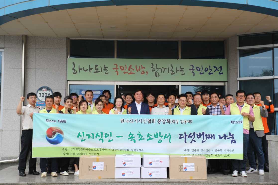 속초소방서, 한국신지식인협회 중앙회에 소방대원을 위한 물품 전달 받아