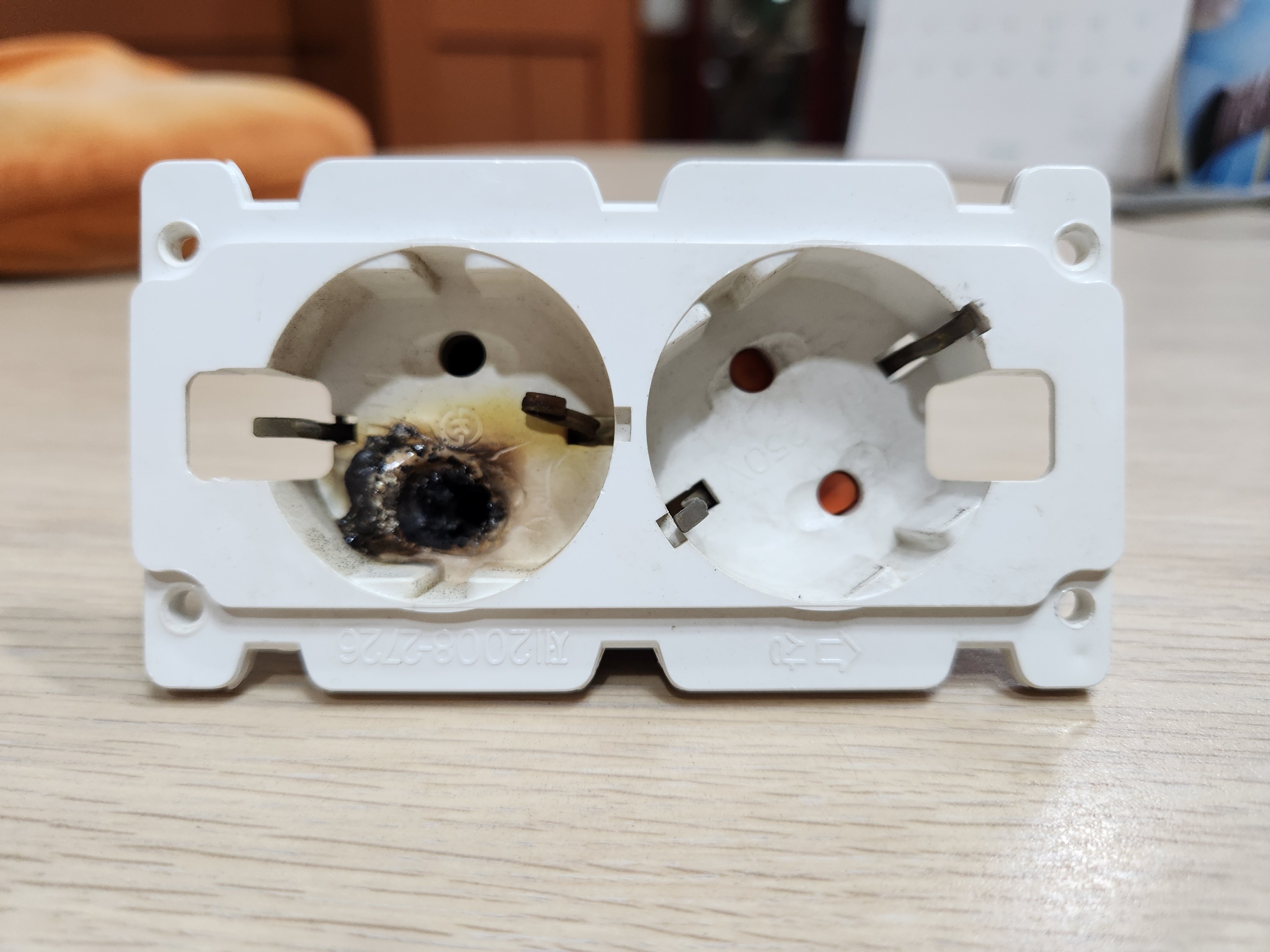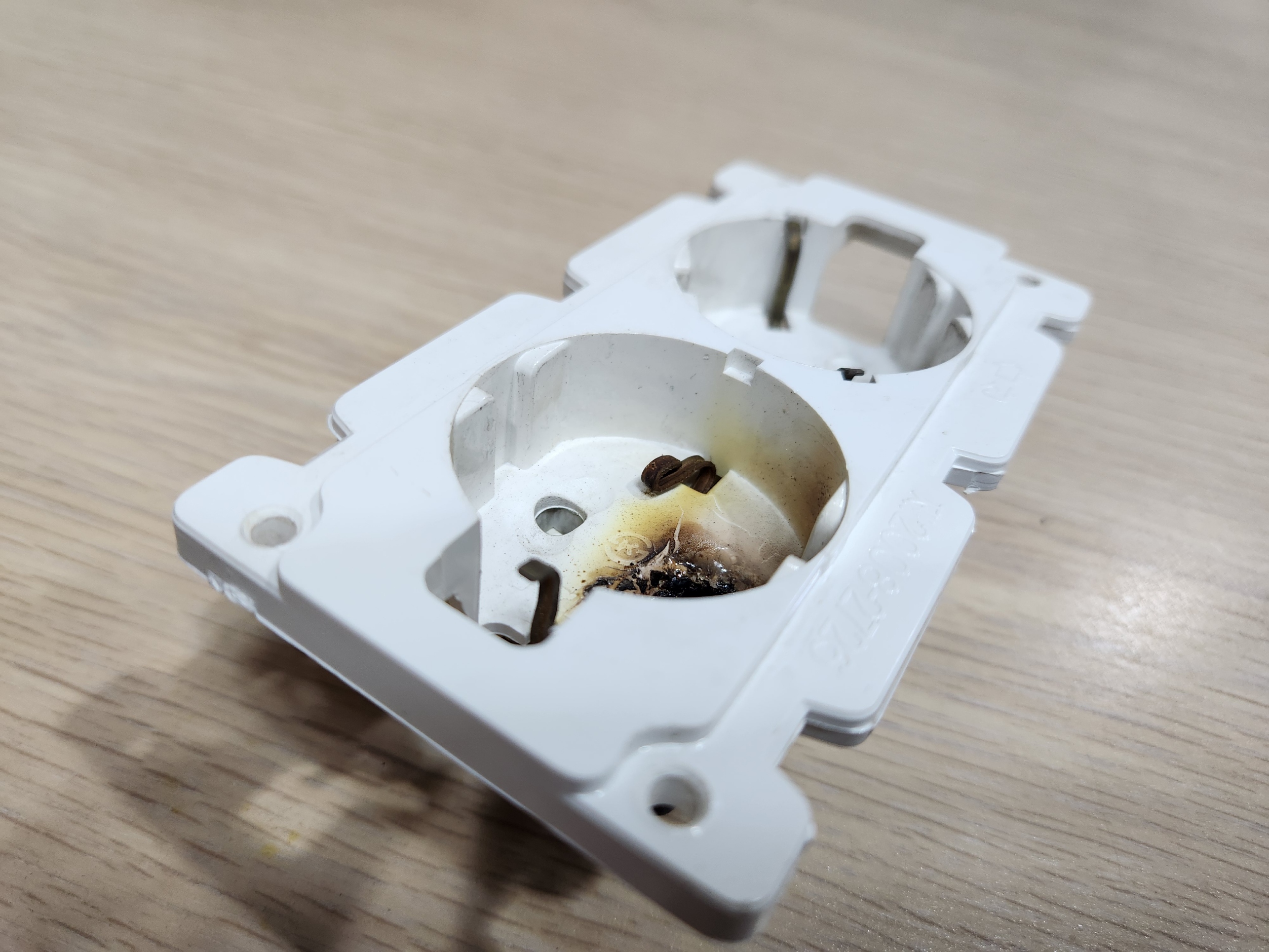 매립 콘센트 접지단자 불량으로 인한 화재발생 사진 보내드립니다.