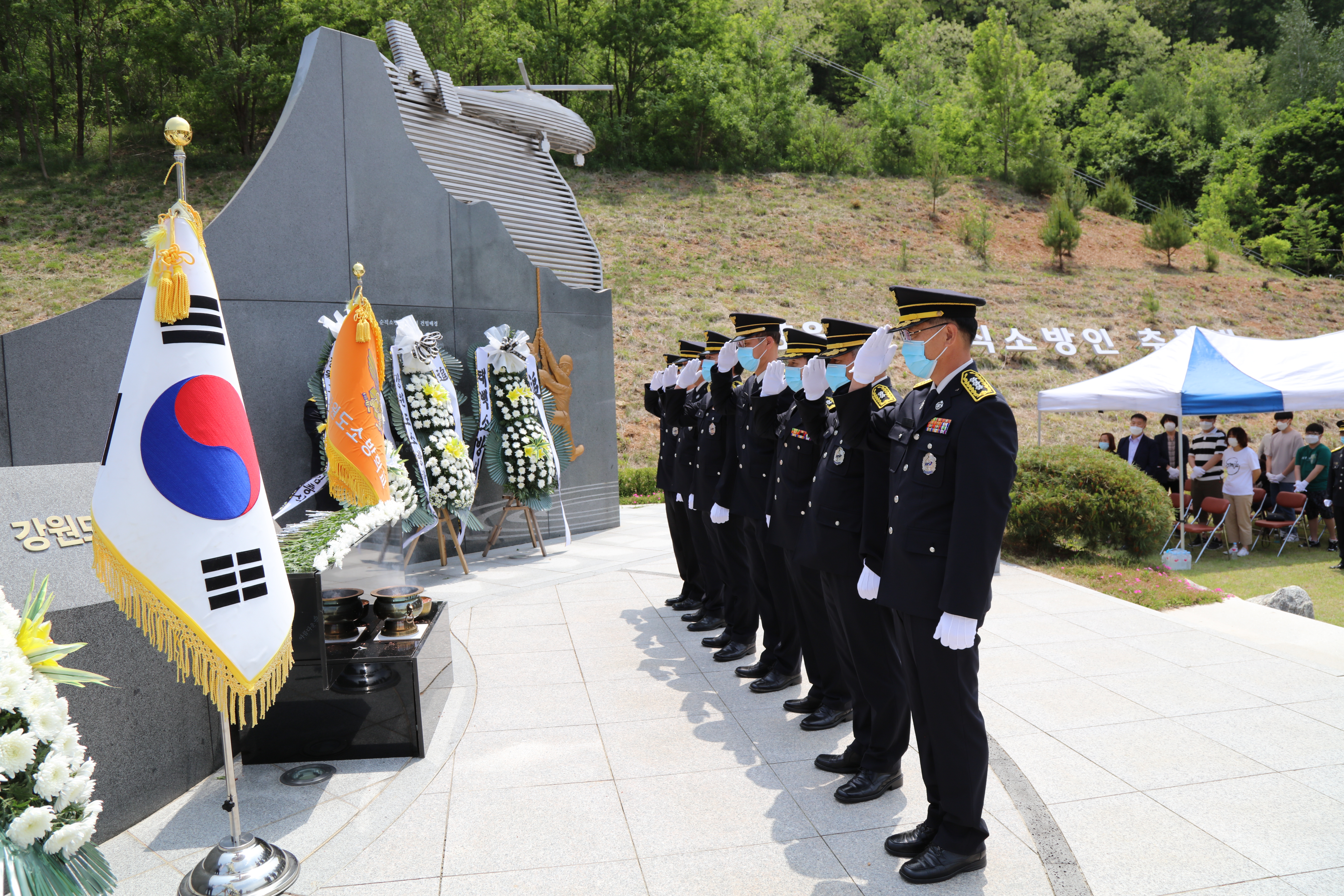 이날 행사는 강원도소방학교가 주관하여 교직원 및 태백, 삼척, 영월, 정선 소방서 직원 등 76명과 지난 2016년 5월 4일 강풍 시 순직한 故 허승민 소방위 유가족 17명이 참석한 가운데 엄숙한 분위기 속에서 진행됐다.