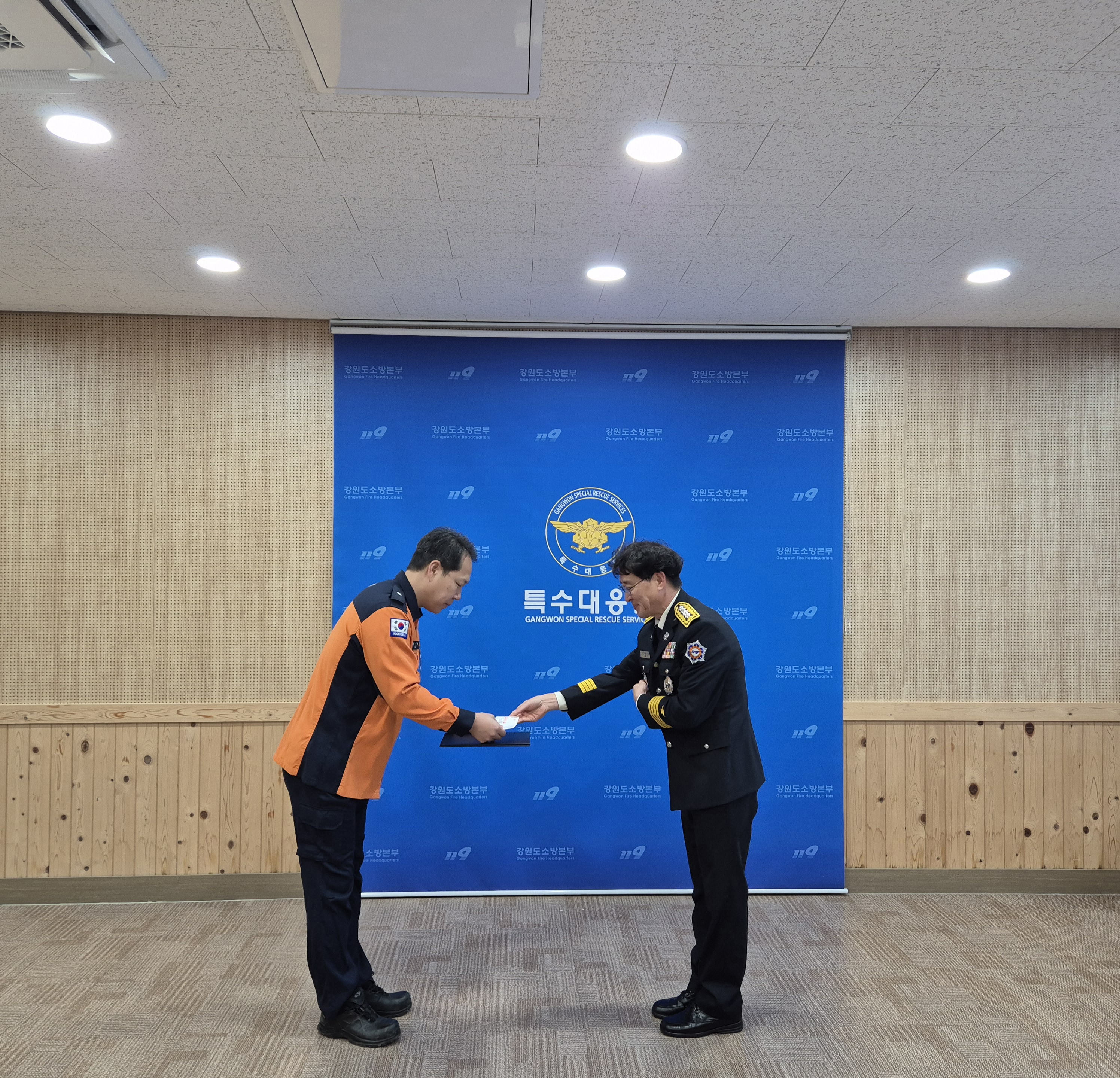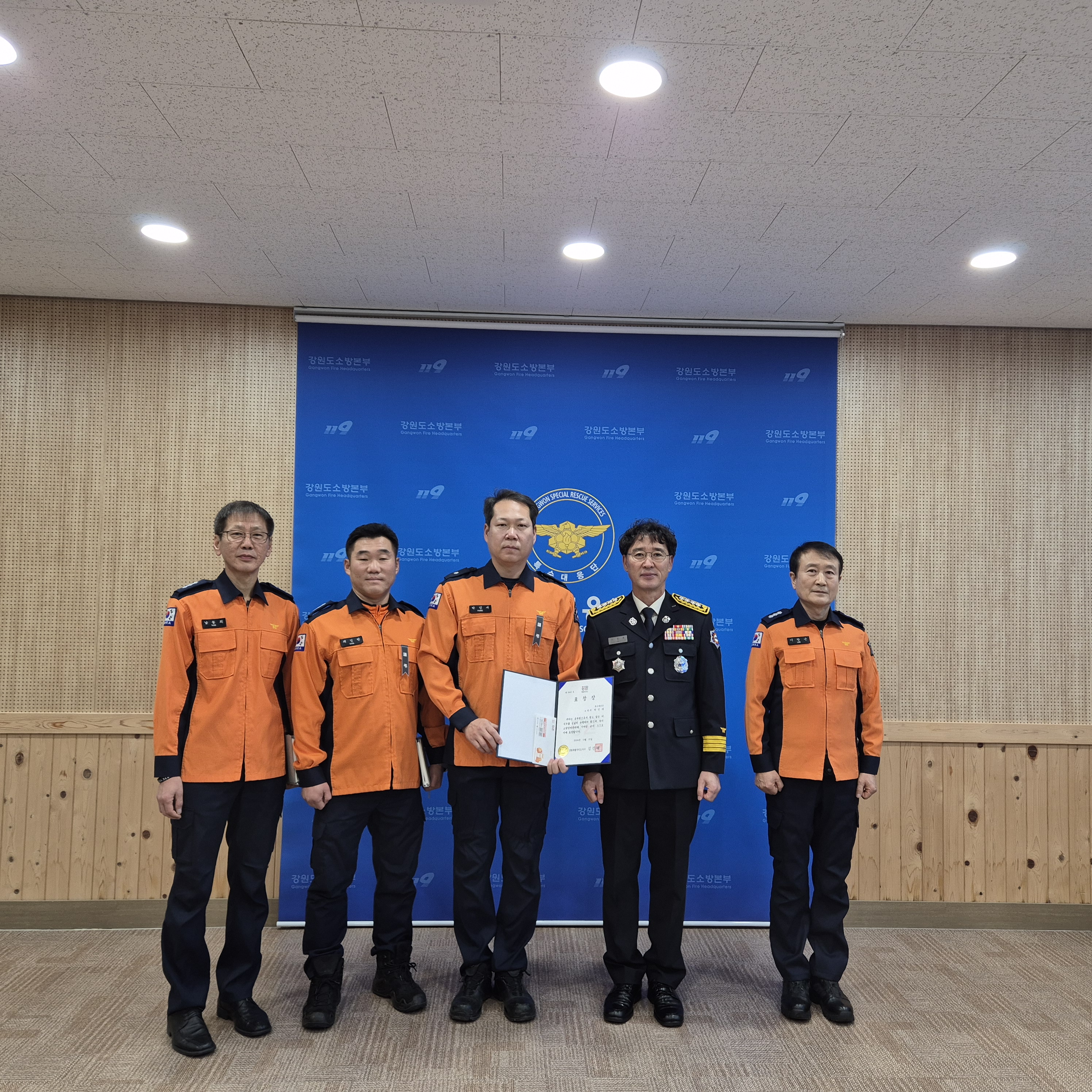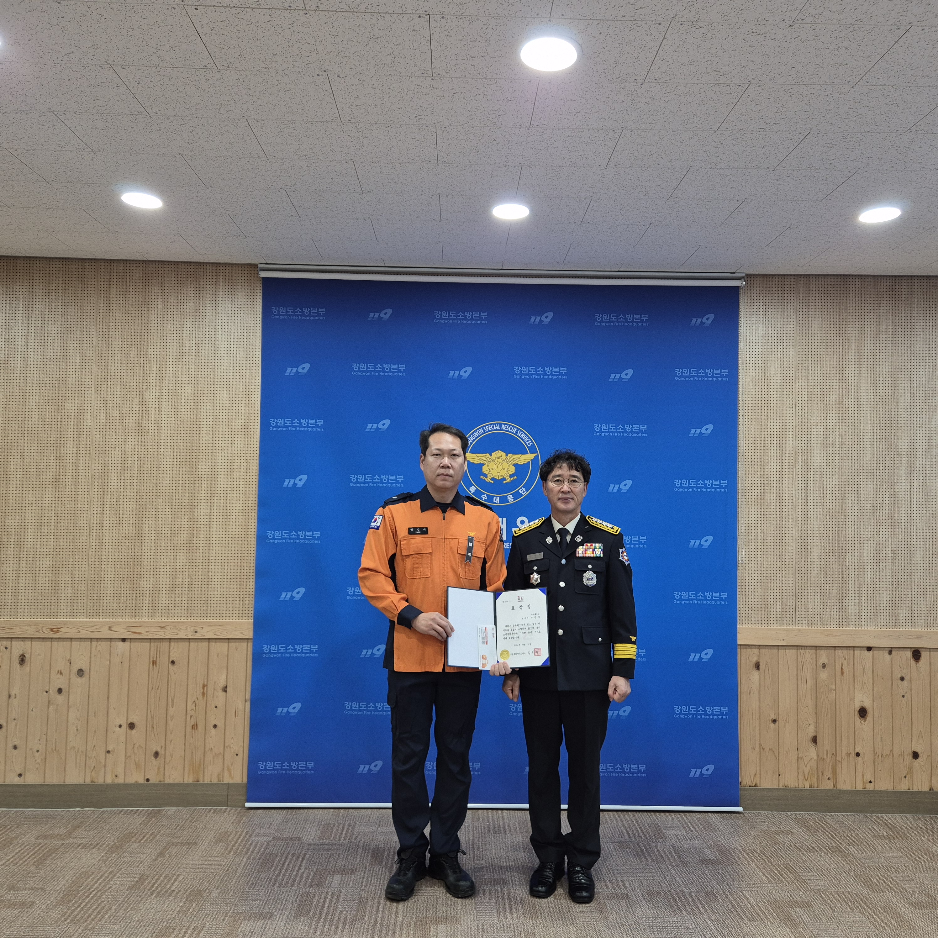 표창 대상자는 긴급기동대 소방위 박민재로 특수대응단에서 관리·운용하는 소방장비 관리 및 발전에 기여하였기에, 표창장을 수여하였습니다.