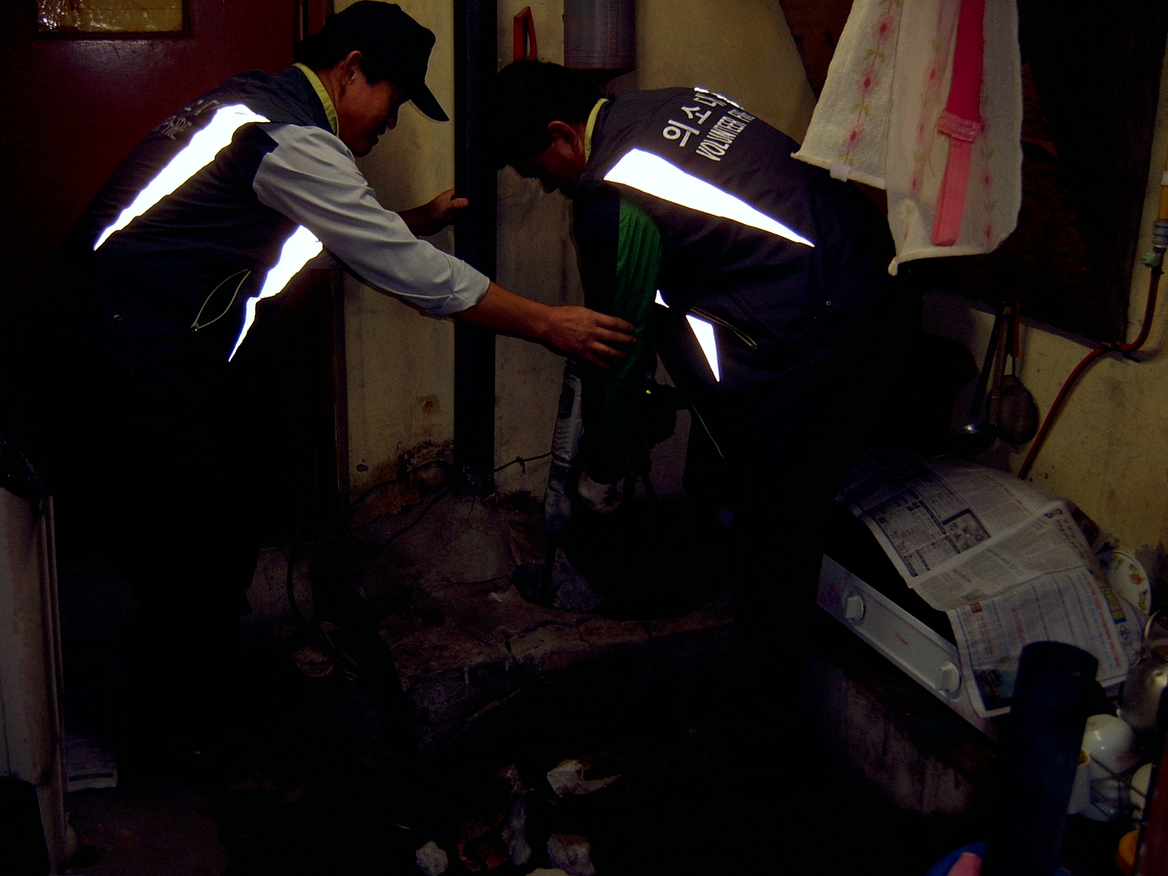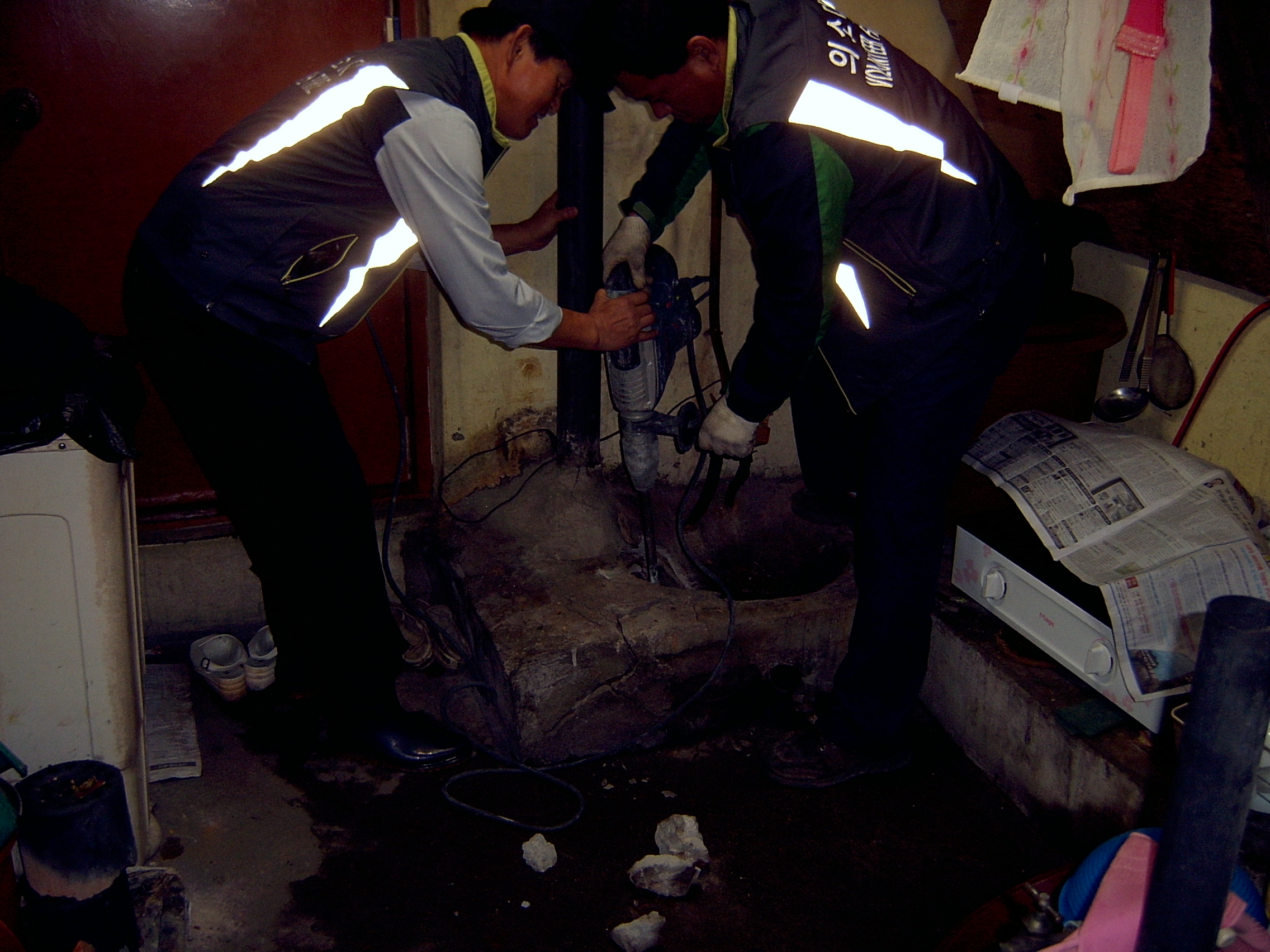 홀로사시는 할머니댁에 방문하여보니 보일러가 터졌있었다 .