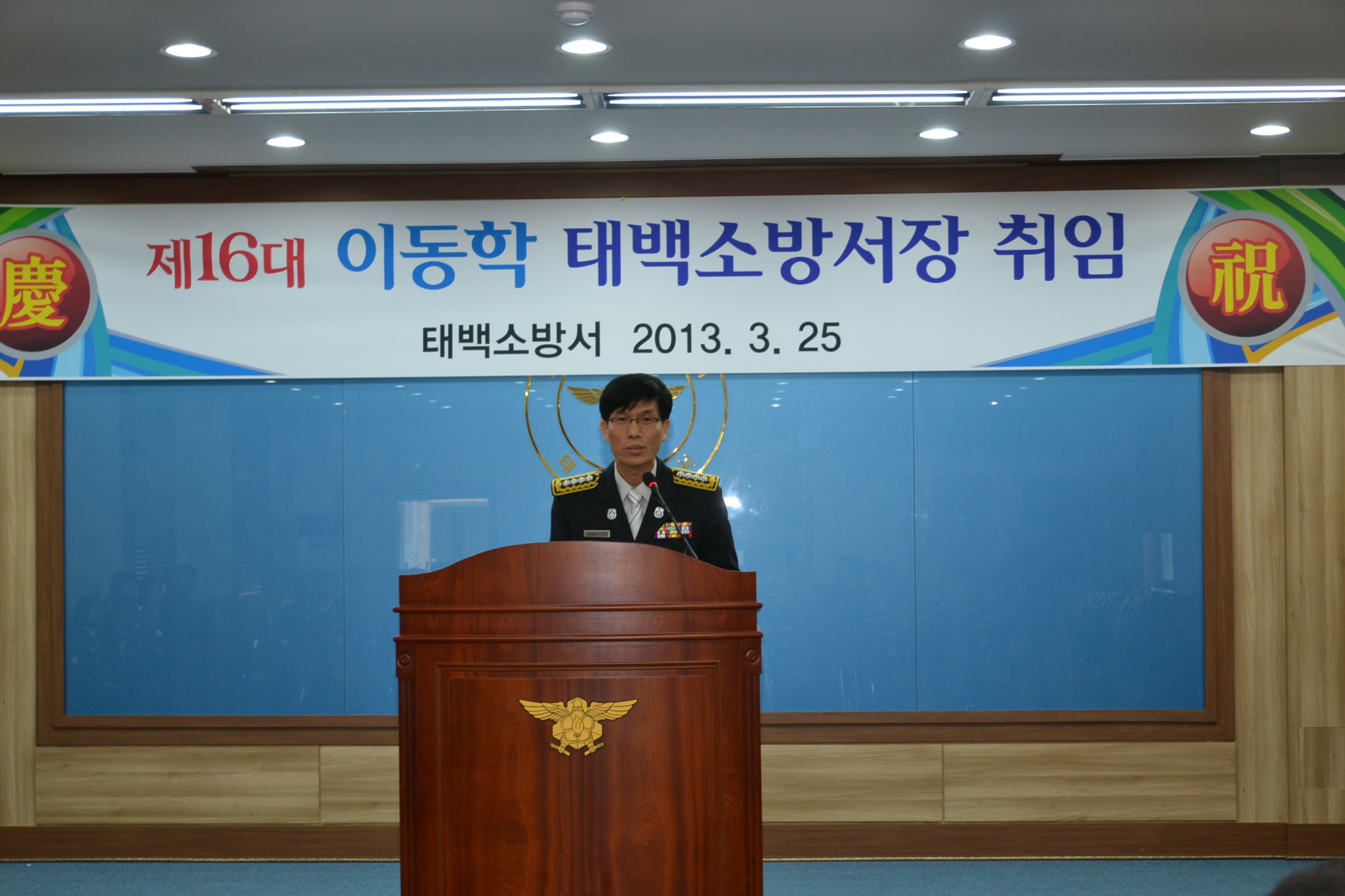 3월 25일 오전 10시 태백소방서 대회의실에서 ‘제16대 태백소방서장’으로 부임한 이동학(48) 서장의 취임식이 거행됐다.