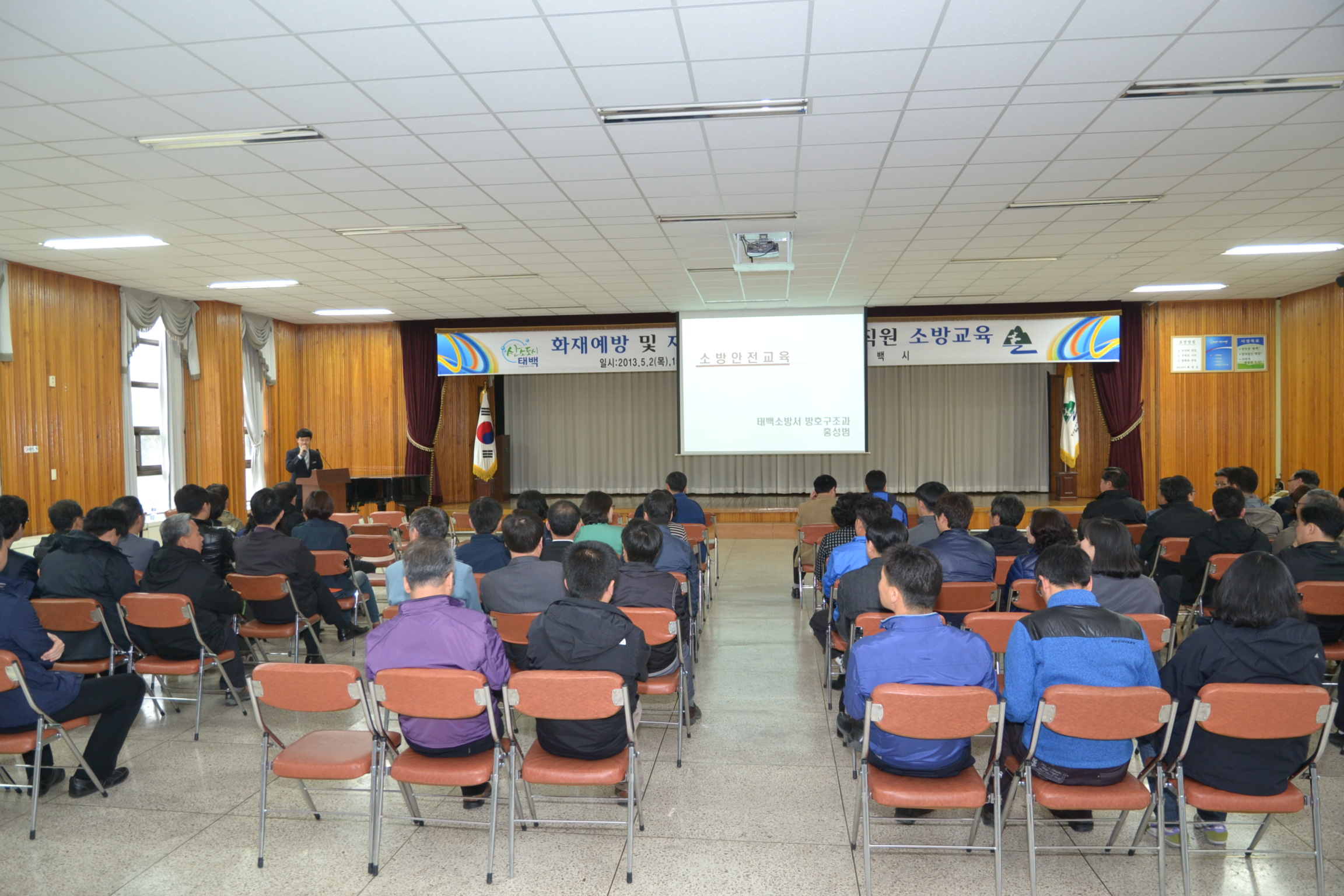 태백소방서(서장 이동학)는 2일 오후3시 태백시청 대회의실에서 시청 직원 60명 대상으로 화재, 재난, 재해 등 위급한 상황에 대비한 소방안전교육을 실시하였읍니다.