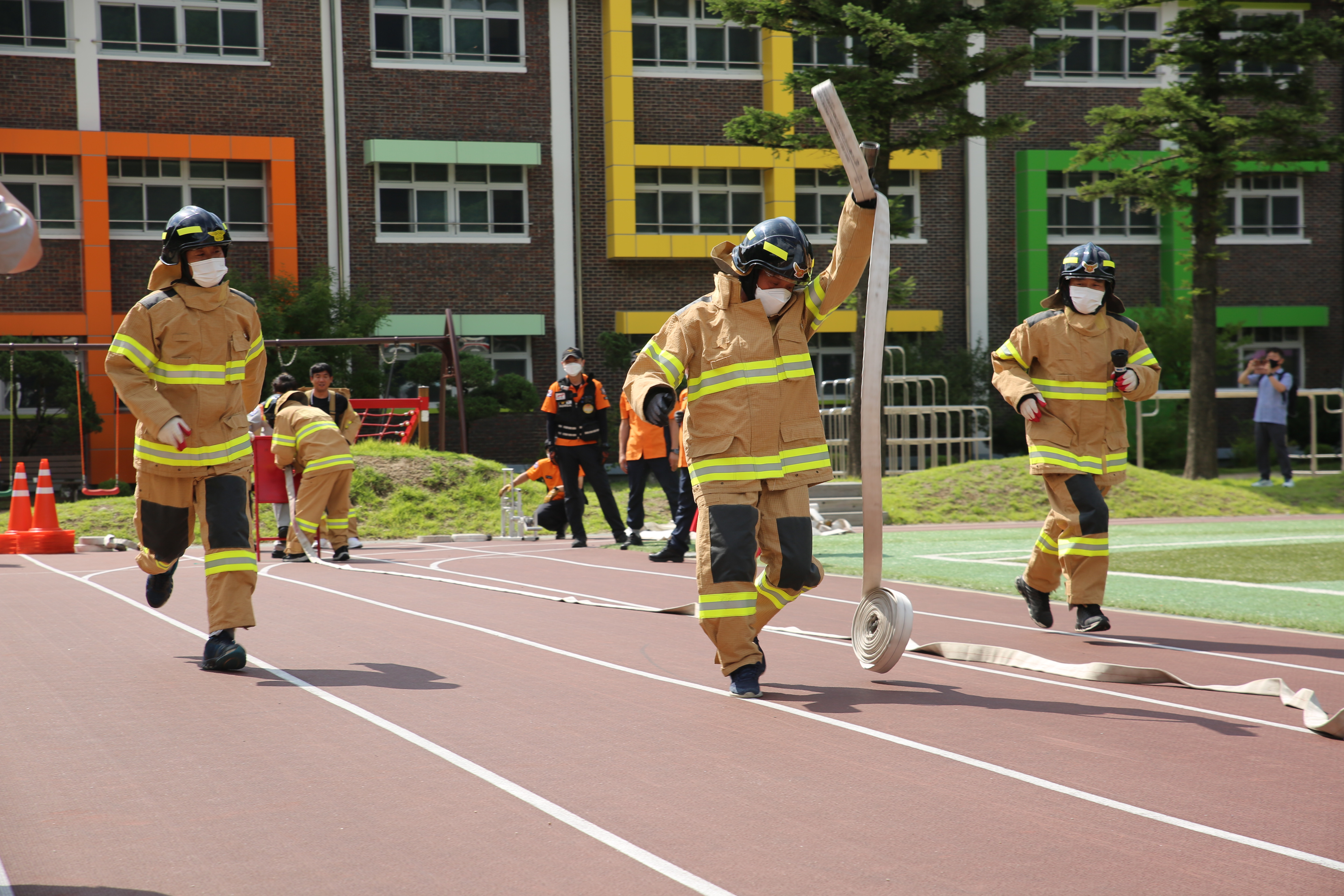 이번 대회는 한동구 부시장, 고재창 시의장, 김재석 소방서장, 의용소방대원 등 300여명이 참석한 가운데 재난 현장 보조능력 평가를 위한 소방호스 끌기, 소방호스 연장, 개인장비장착 릴레이 등 4개 종목을 진행했다.