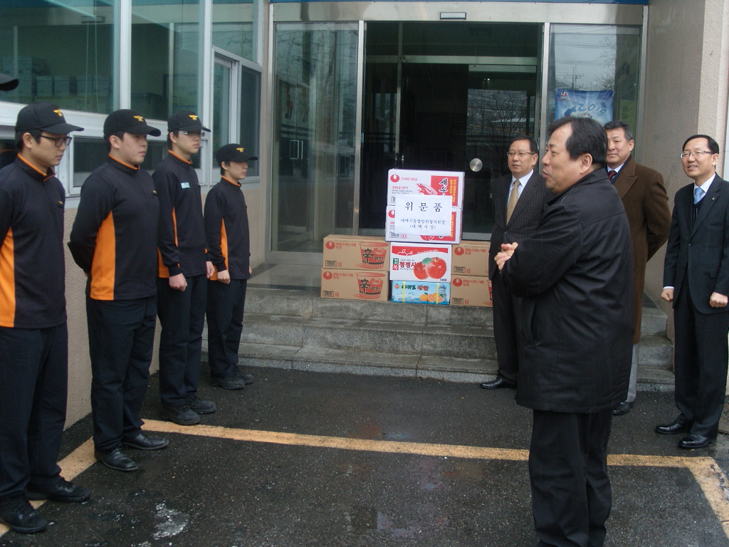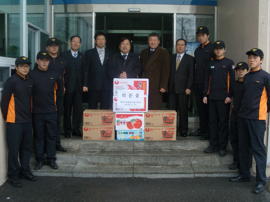 2월 10일(수) 오전 태백시통합방위협의회에서는 태백소방서를 방문하여 설을 앞두고 군복무 중인 의무소방원들과 사회복무요원들에게 위문품을 전달하고 격려했다.