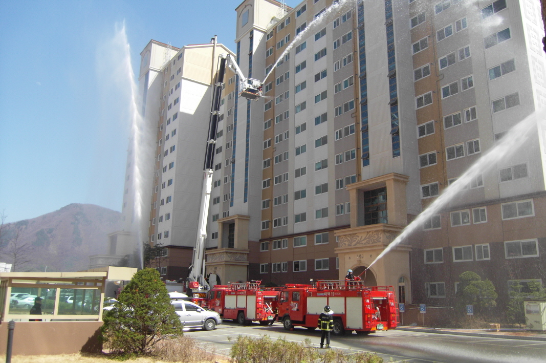 태백소방서(서장 여윤길)는 4.12(화)일 황지동 예체아파트에서 소방차 9대, 소방공무원 23명, 자위소방대 10여명이 참여한 가운데 ‘고층건물 합동소방 훈련’을 실시했다.