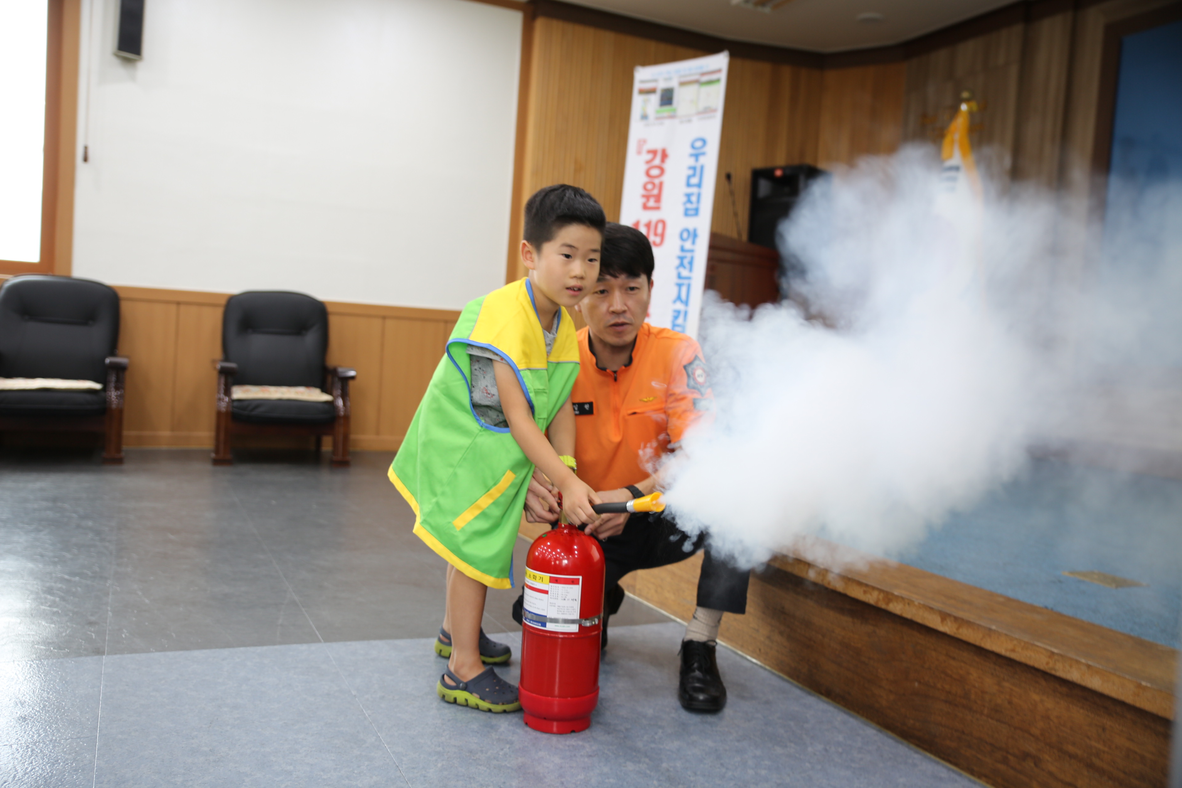 주요 교육내용으로 △소방관이 하는 일 소개 △소방챠랑, 진압 및 구조장비 견학 △물소화기 화재진압 체험 등을 진행했다.