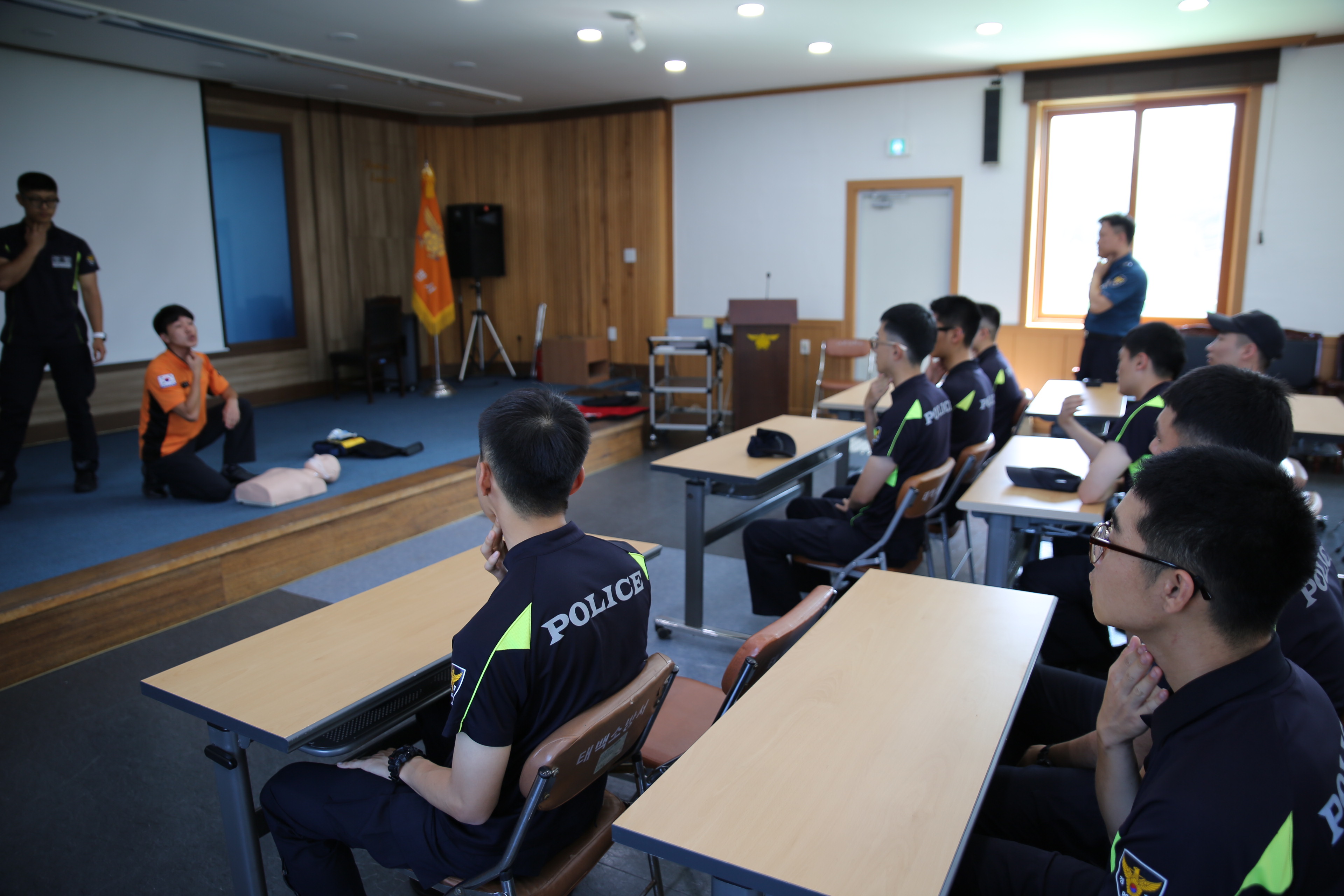 이번 교육은 여름철 물놀이 사고에 사전 대비하고자 태백경찰서의 요청으로 실시되었으며, 수난사고시 대처 및 구조방법, 심폐소생술, 소화기, 소화전 사용법에 대한 강의와 실습으로 진행되었다.