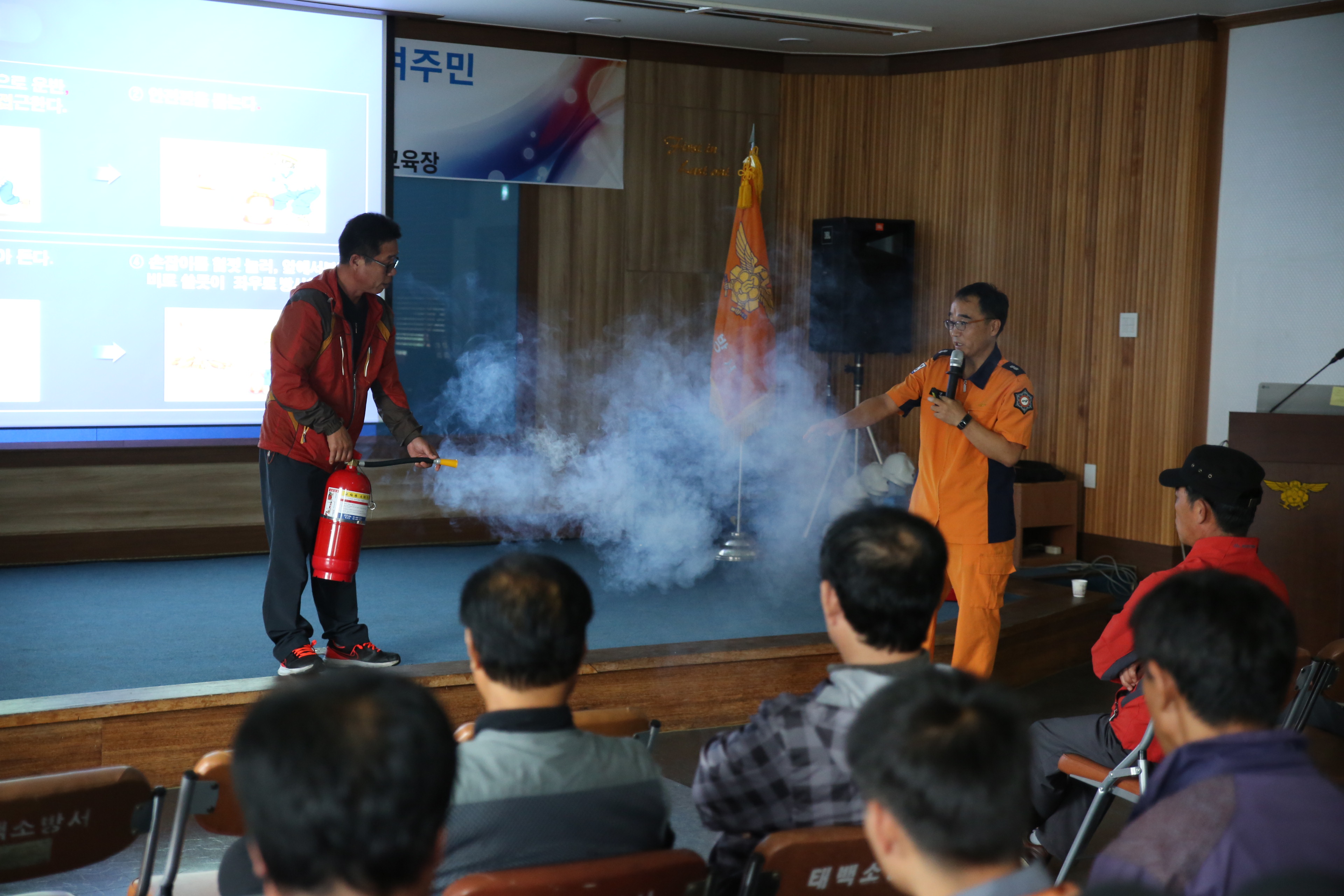 교육은 △ 화재안전과 관련된 법령 및 제도 △다중이용업소에서 화재가 발생한 경우 초기대응 및 대피요령 △소방시설 및 방화시설의 유지관리 및 사용방법 △심폐소생술 등 응급처치 요령 △주택용 기초소방시설 설치 의무 홍보 △옥내소화전 방수 및 소화기 사용체험으로 진행되었다.