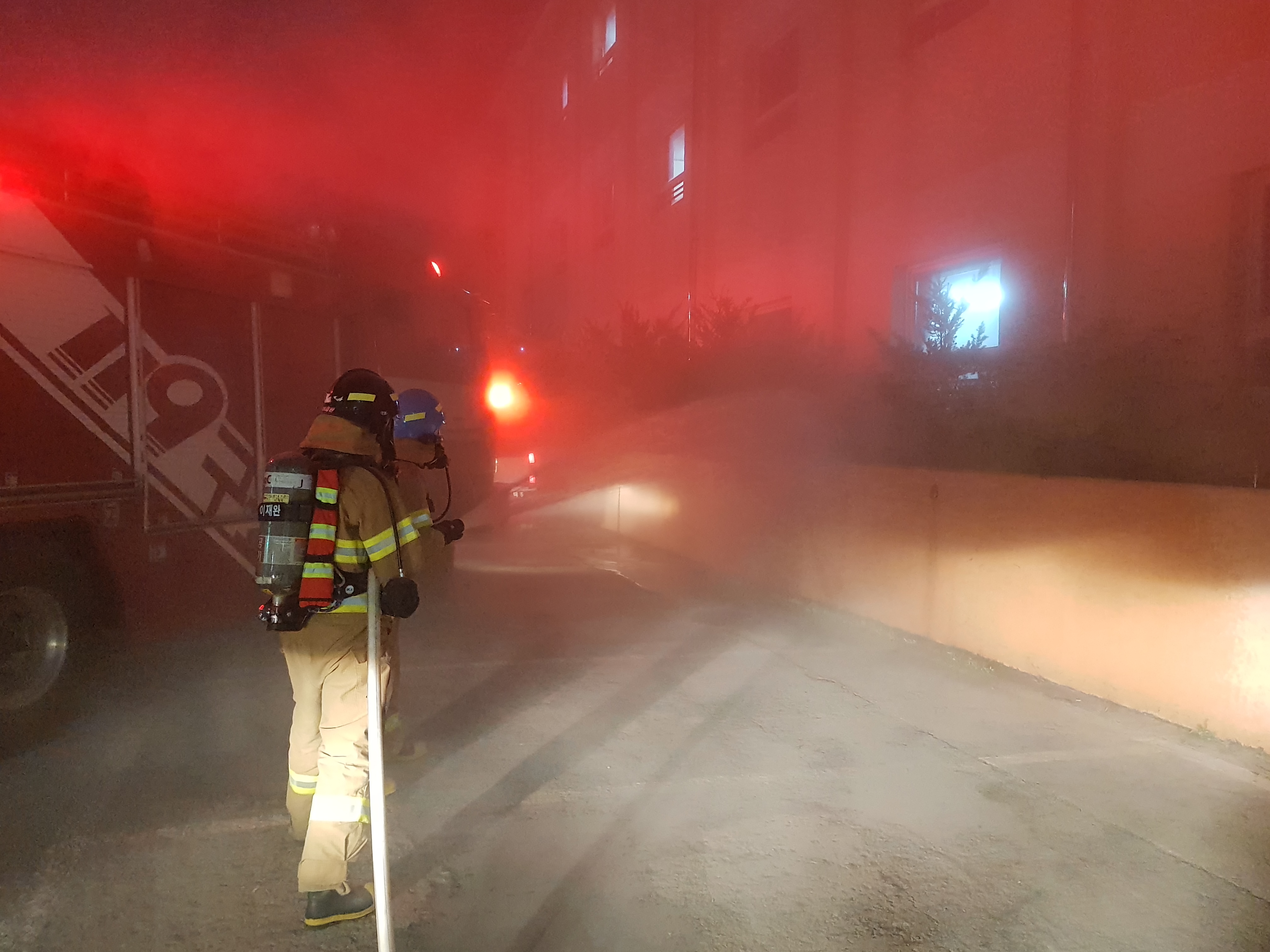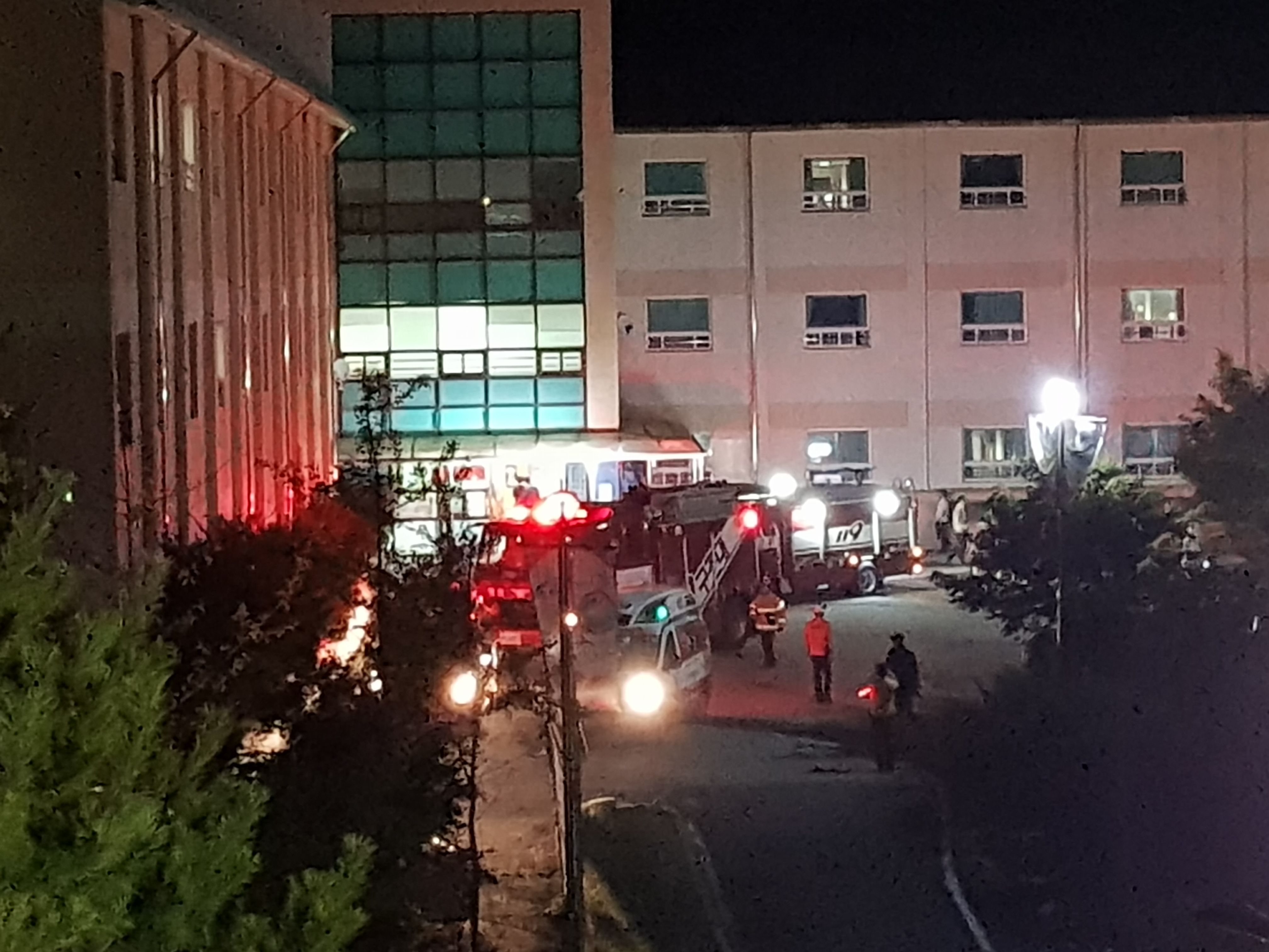 강원관광대 청운학사에서 공공기관합동소방훈련 야간훈련 실시