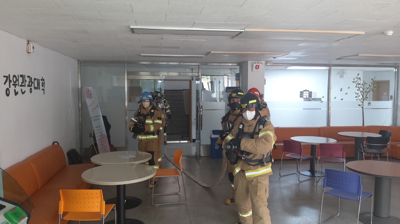 태백소방서, 강원관광대학교 대상 합동소방훈련 실시
