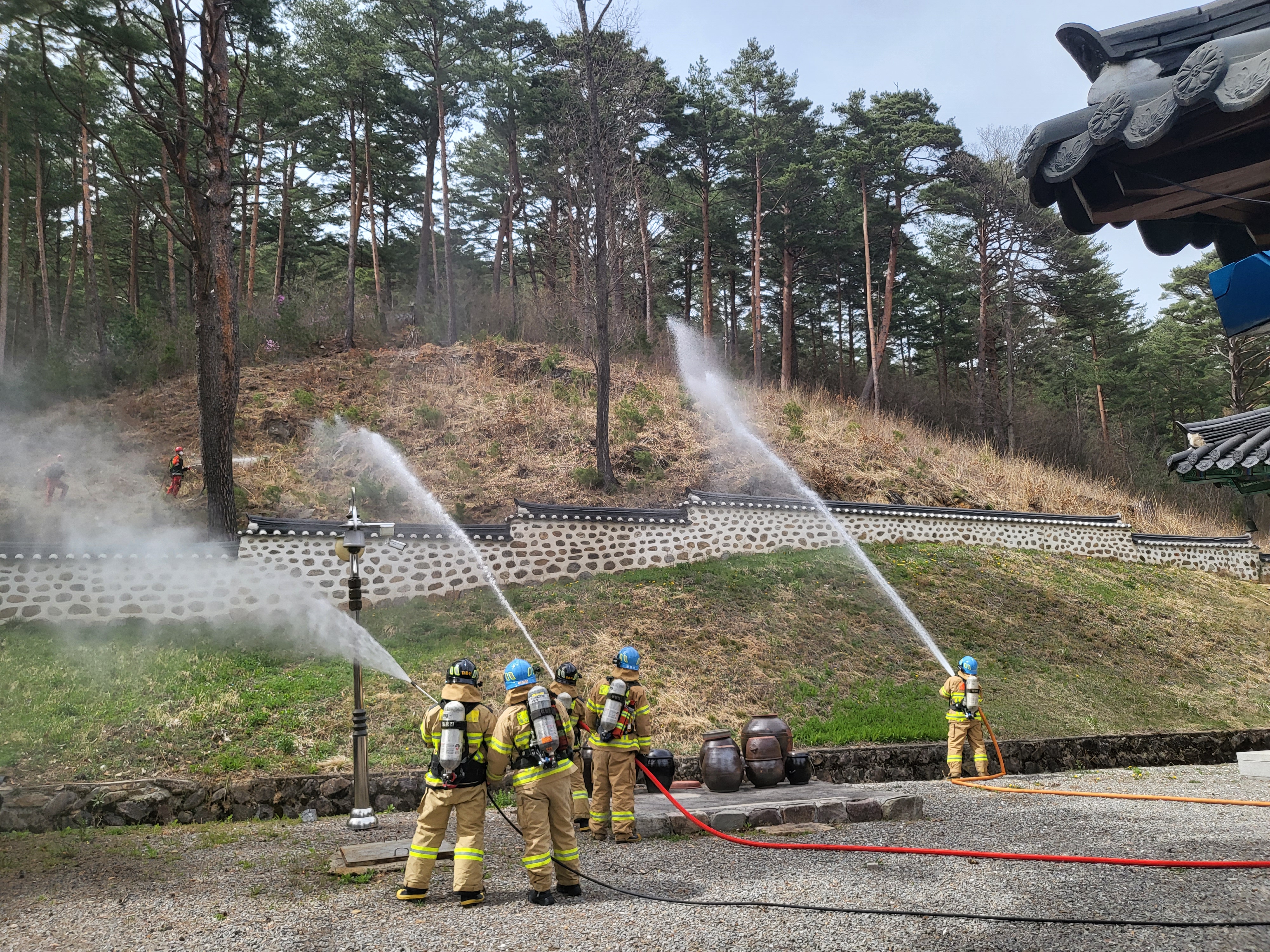 봄철 산림화재 대비 장명사 유관기관 합동 소방훈련