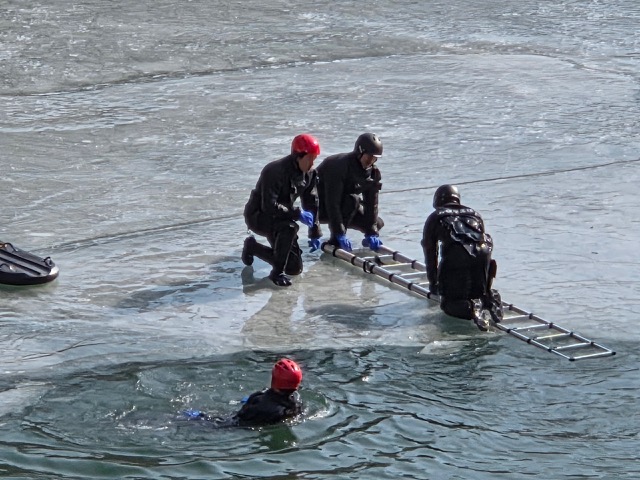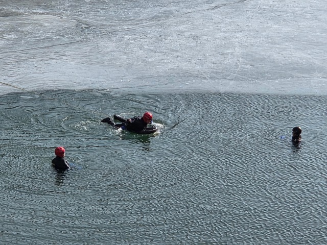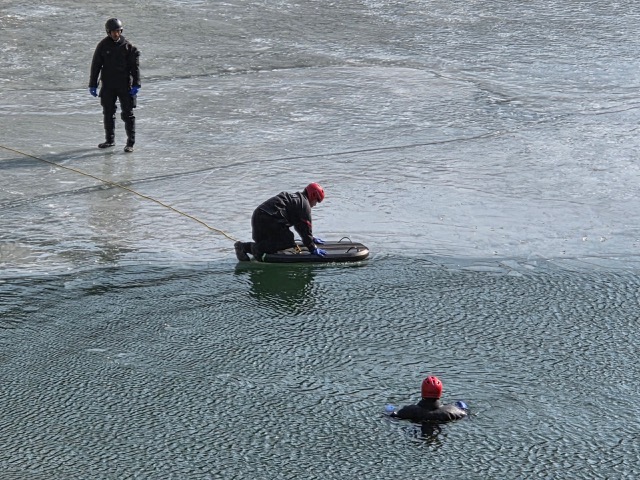 태백소방서는 13일 금요일 태백시 절골 취수댐 일원에서 동계 해빙기 내수면 수난사고에 대비한 인명구조 훈련을 실시했습니다.