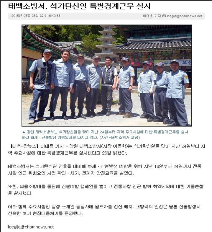 태백소방서, 석가탄신일 특별경계근무를 실시하였다.