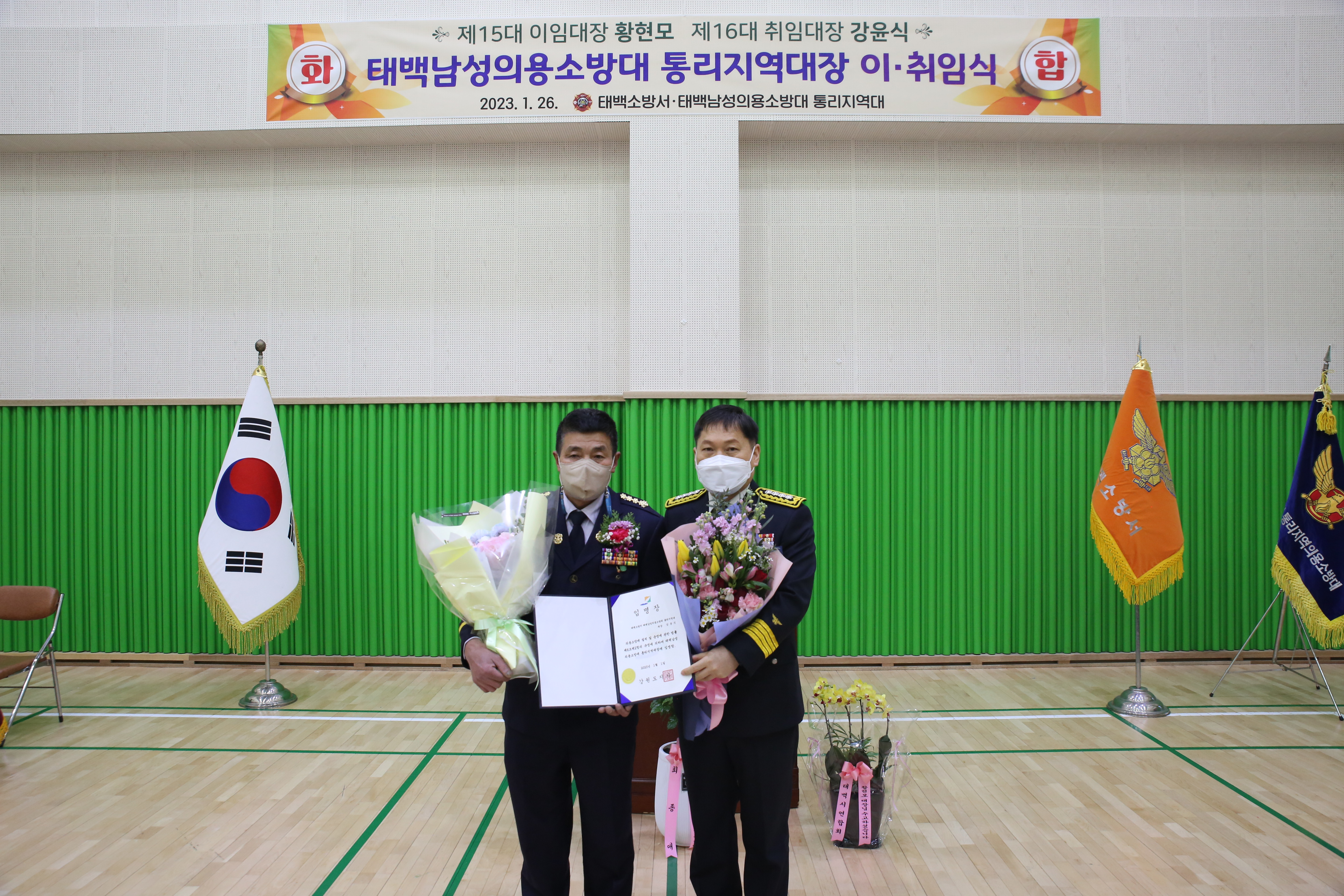 태백남성의용소방대 통리지역대장 합동 이·취임식 개최