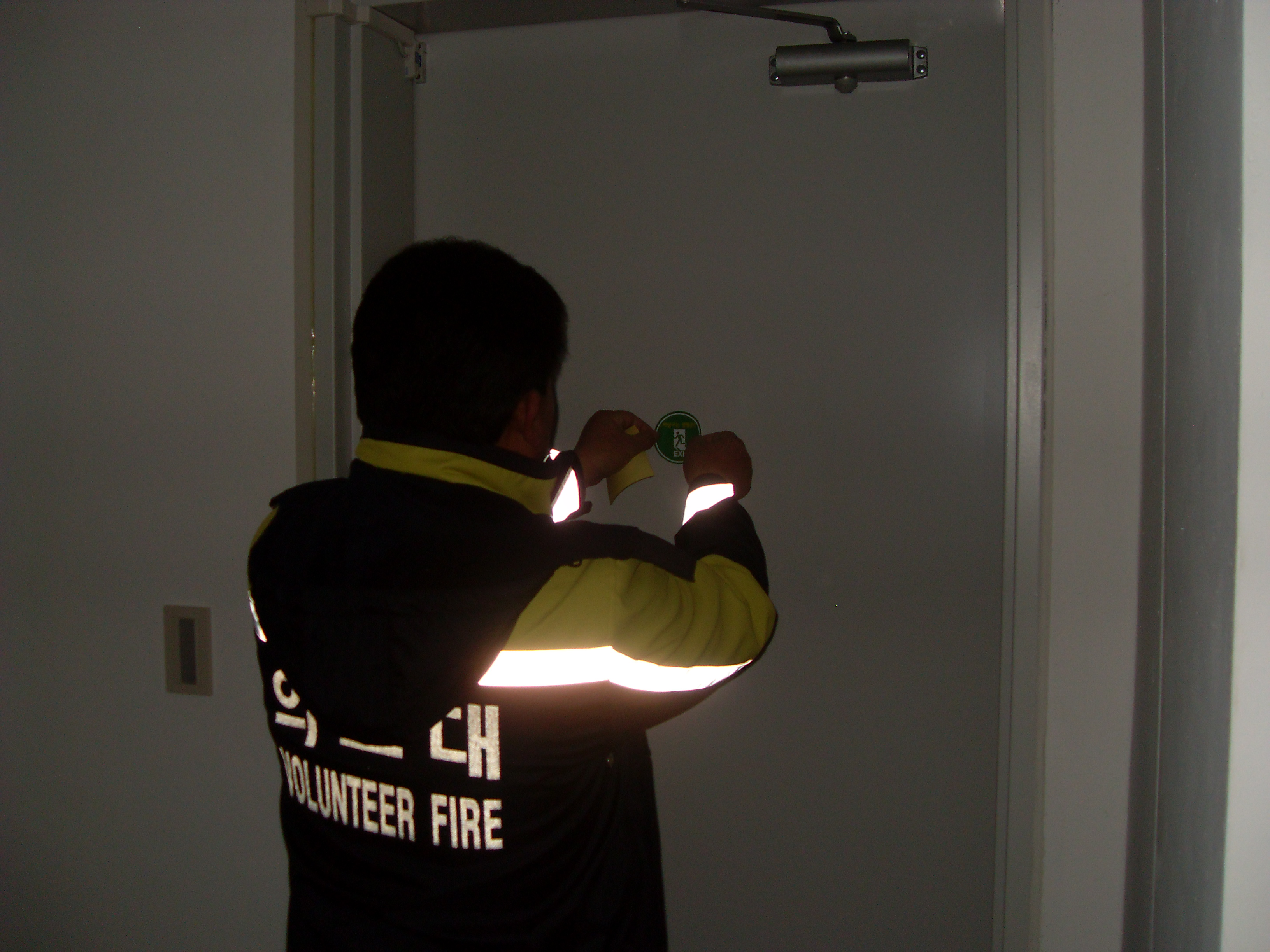 비상구는 생명문 스티커 부착