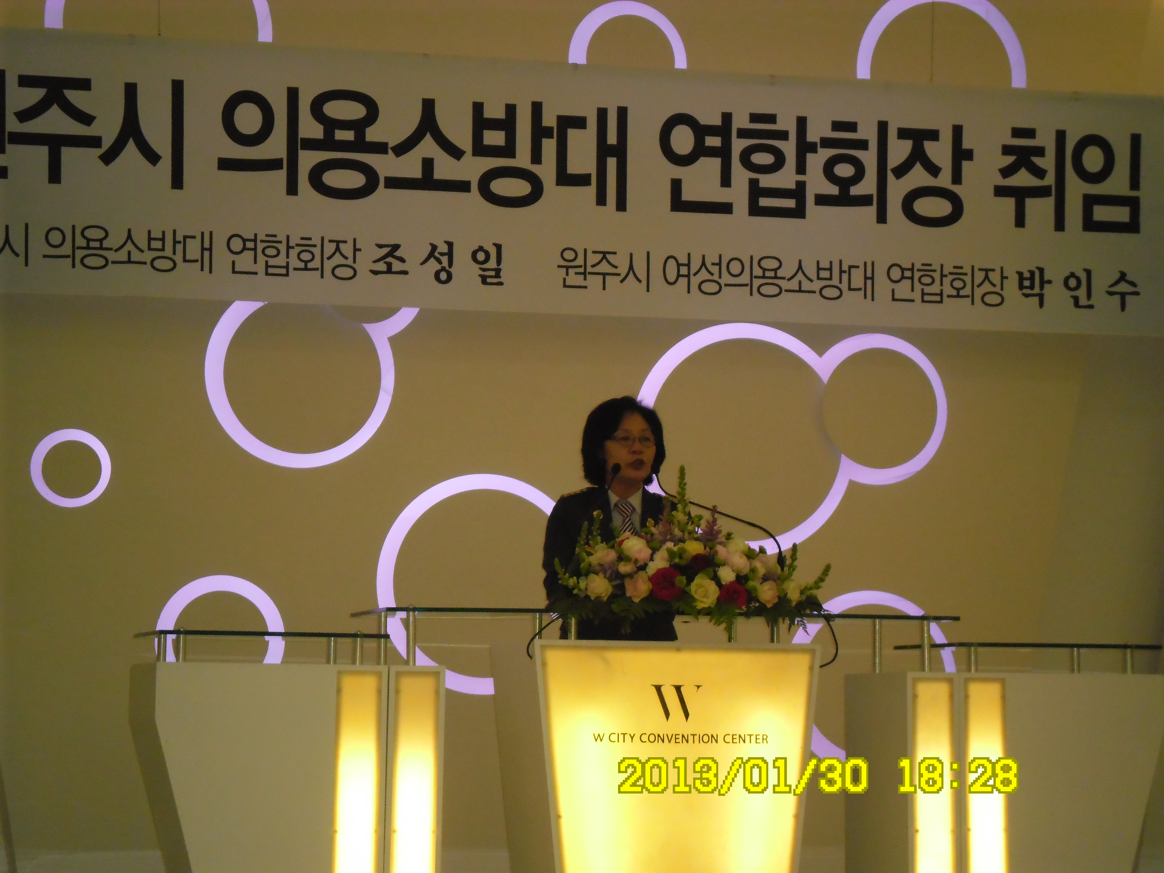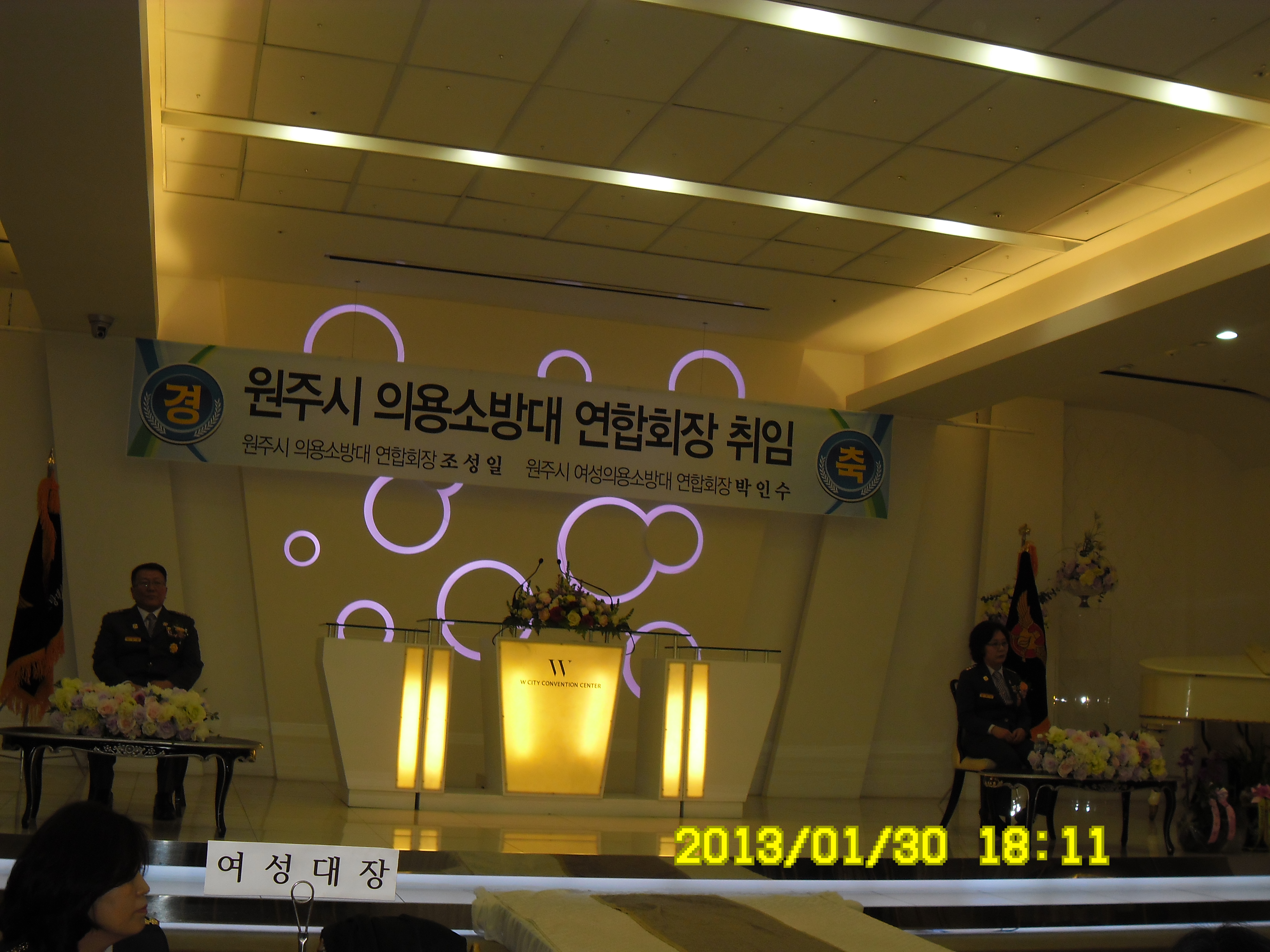 2013년 1월30일 18:00에 연합회장님들의취임식이 있었습니다. 의용소방대연합회장님은 원주의용소방대 대장님이신 조성일대장님,여자의용소방대연합회장님은 지정여자의용소방대 대장님이신 박인수 대장님의 취임식이 있었습니다. 원주시장님과 소방서장님그리고 국회의원님과 기관단체장님들 각대원님들 감사합니다.
