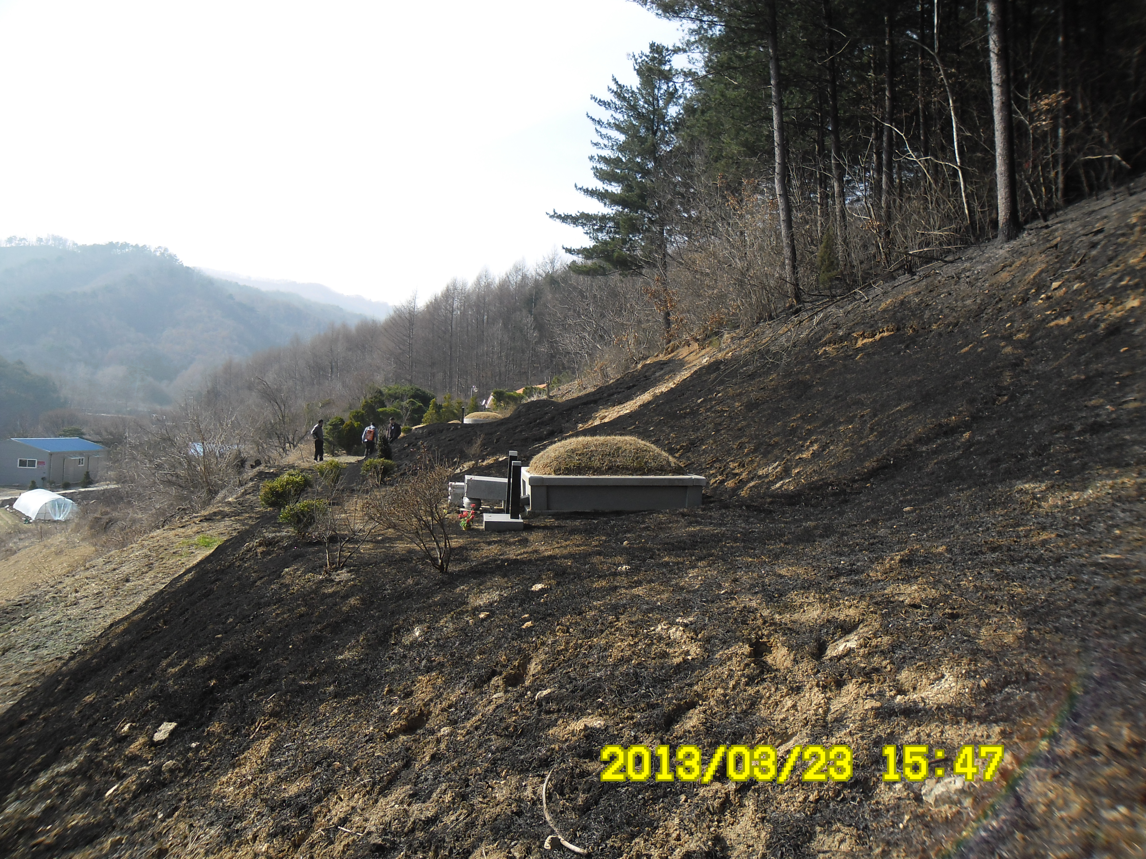 2013년 3월 23일 15시경 안창 부림목재뒤편 야산에 불이 났습니다.